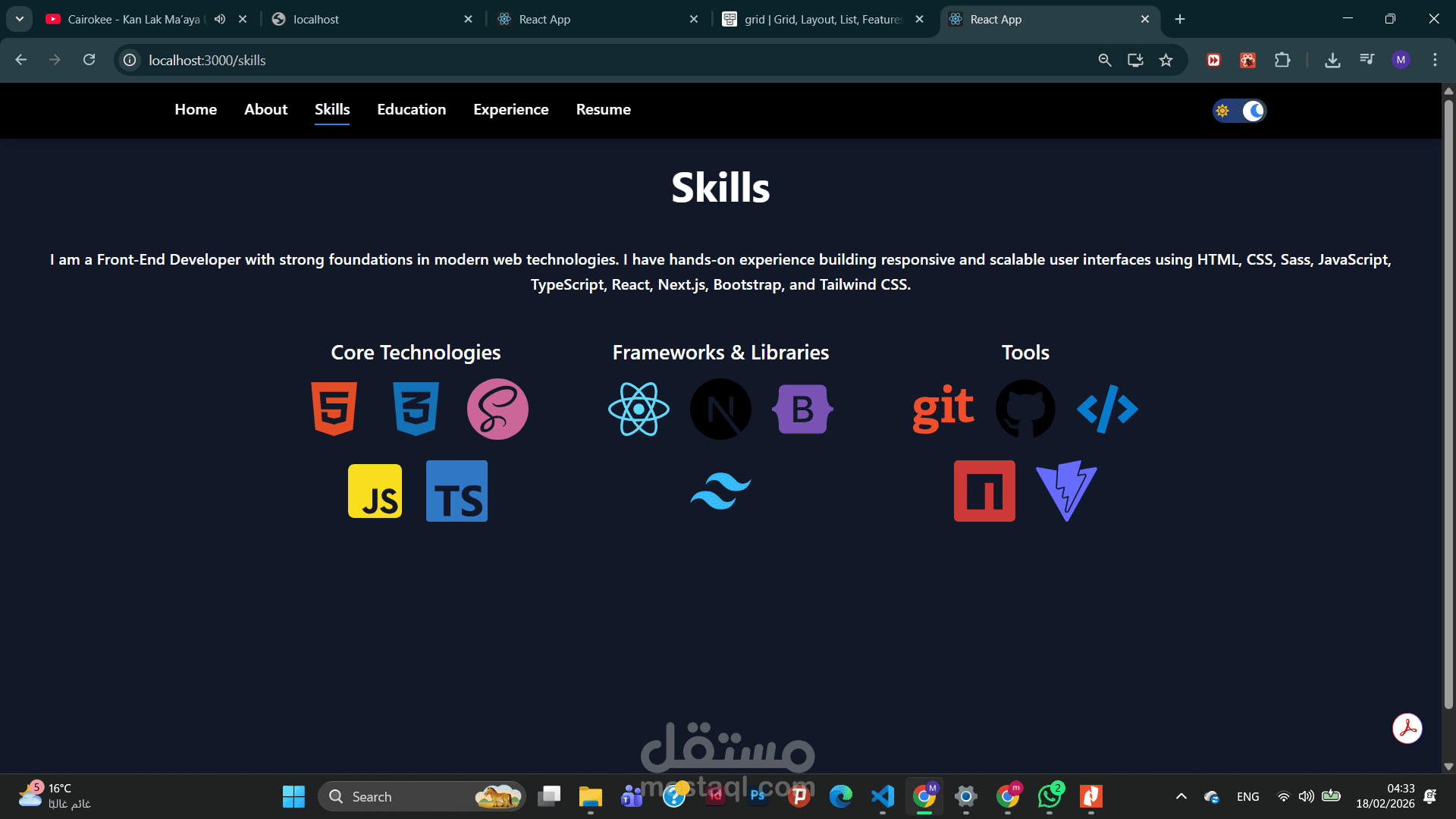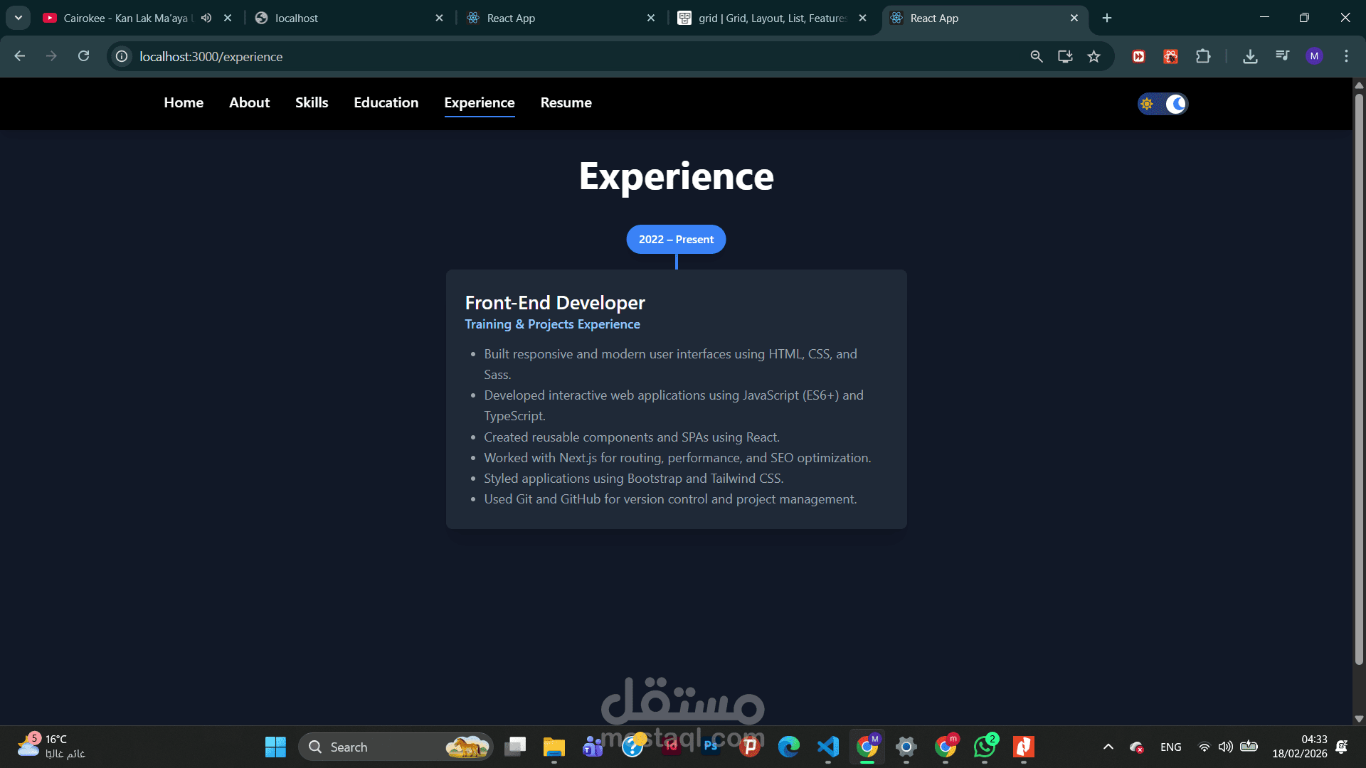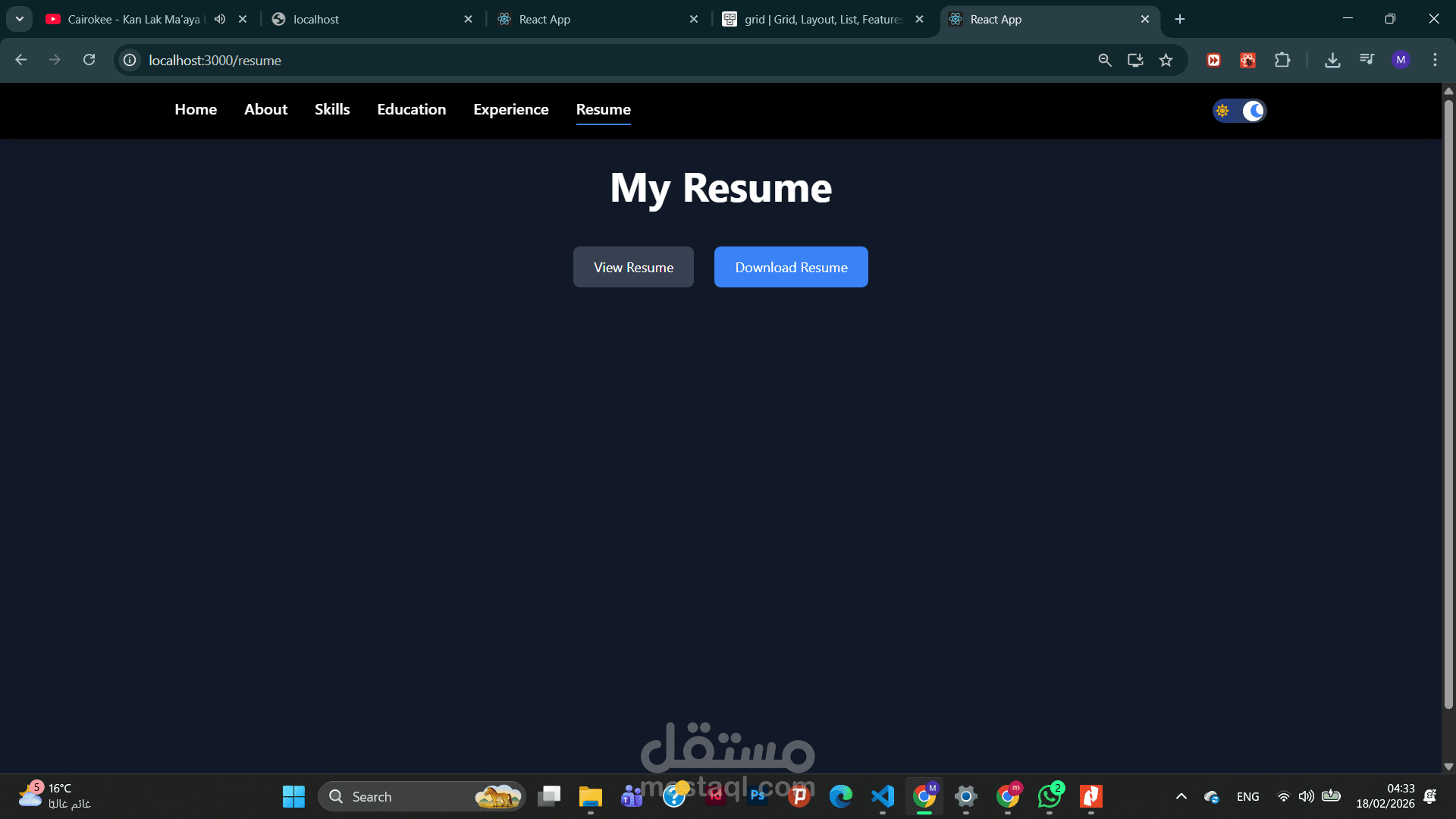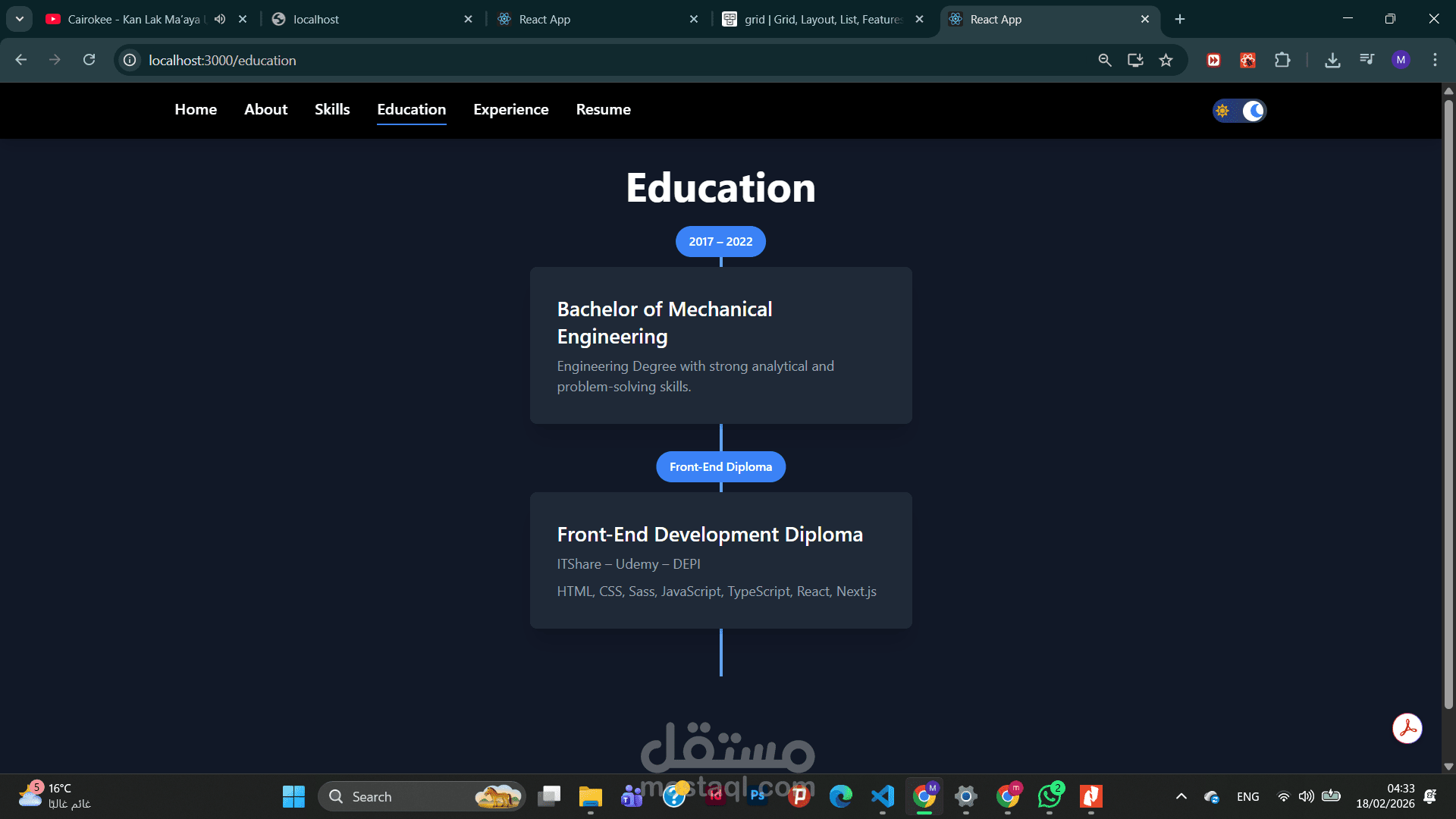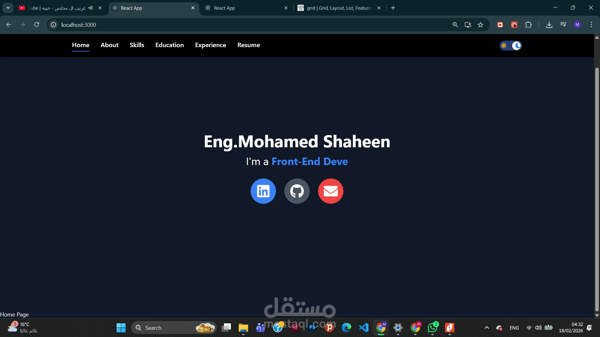تم عمل Portfolio بطريقه احترافيه وسلسه من خلال React.js