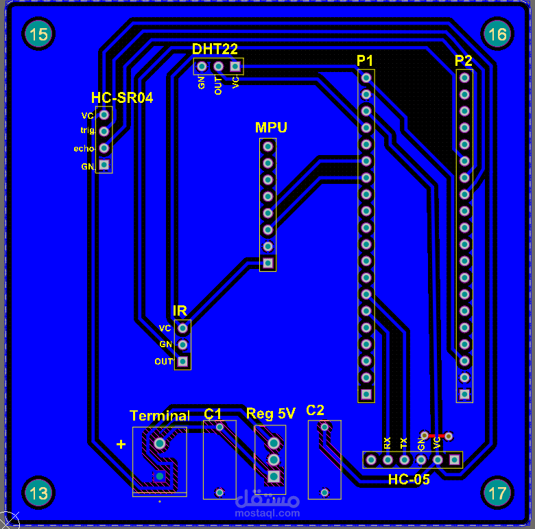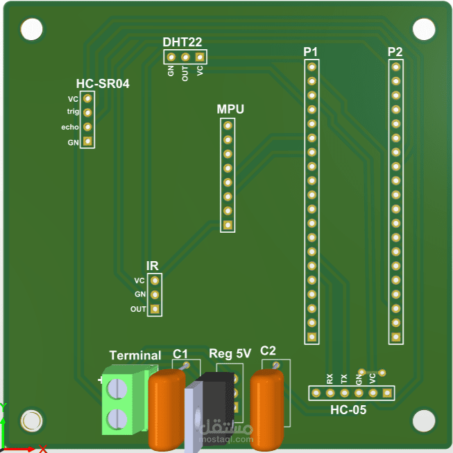 Sensing Suite: Includes dedicated interfaces for HC-SR04 (Ultrasonic), MPU (Motion), DHT22 (Climate), and IR sensors.