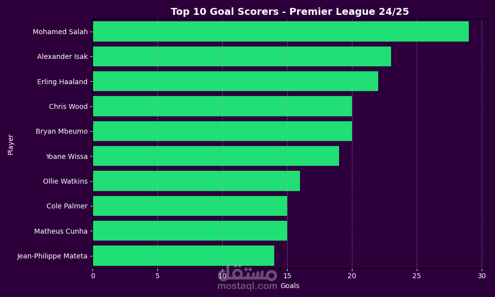 تحليل قائمة أفضل 10 هدافين في الموسم وتحديد الفروقات التهديفية بينهم.