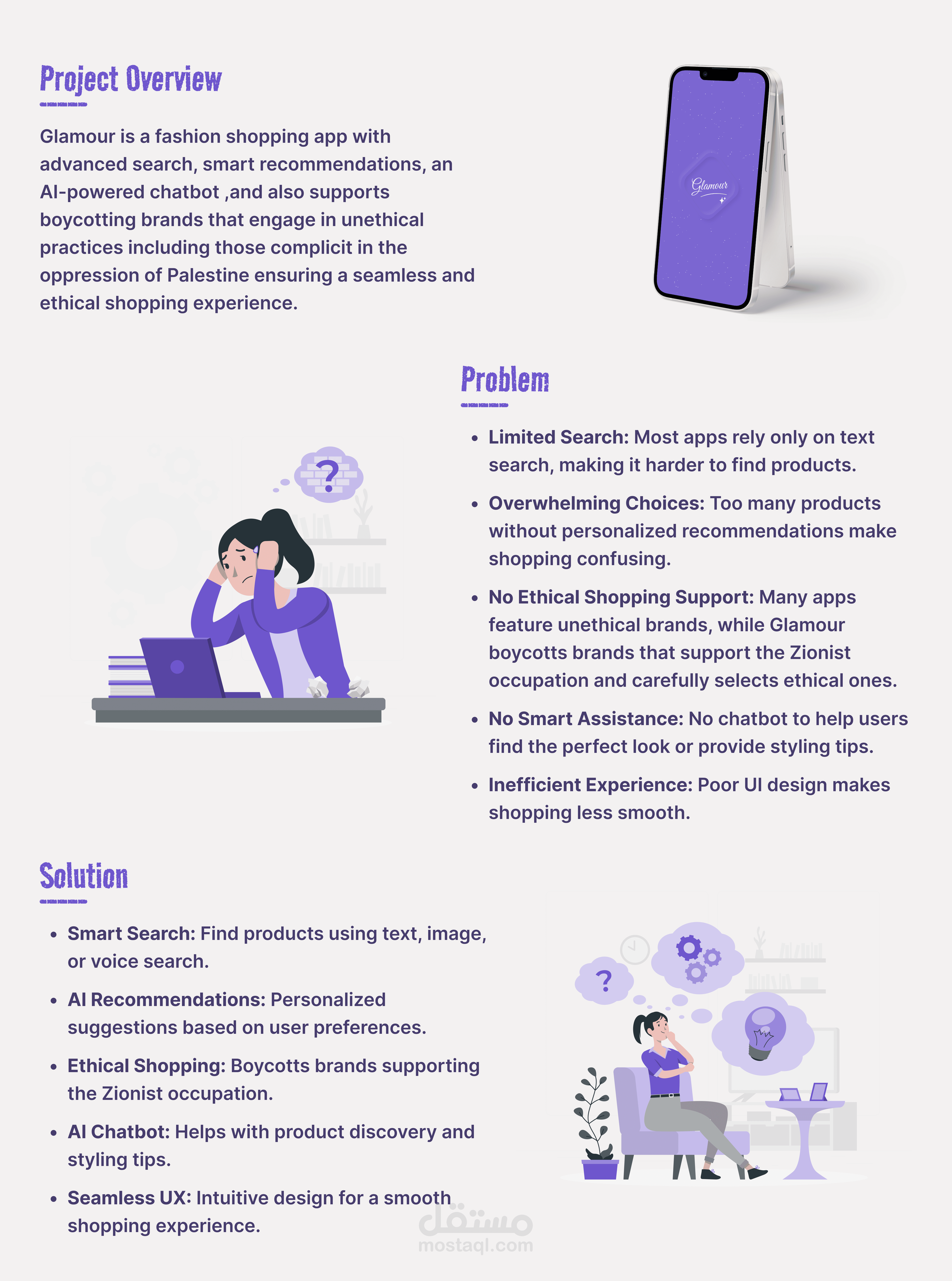 Glamour is a fashion shopping app with advanced search, smart recommendations, an AI-powered chatbot ,and also supports boycotting brands that engage in unethical practices including those complicit in the oppression of Palestine ensuring a seamless and ethical shopping experience.