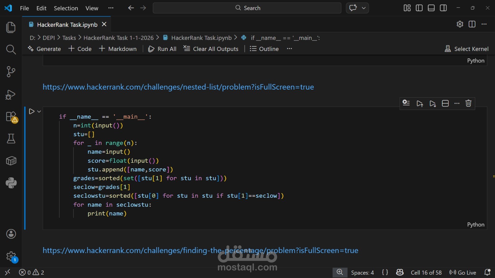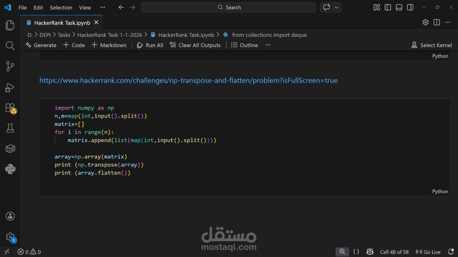 هذا المشروع عبارة عن مجموعة من تمارين وحلول برمجية باستخدام Python، جمعتها كلها في ملف Jupyter Notebook مرتب وسهل المتابعة.