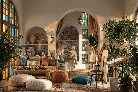 The Interior: Features iconic Moroccan arches, intricate mosaics, and vibrant stained-glass windows that create a warm, artistic atmosphere.