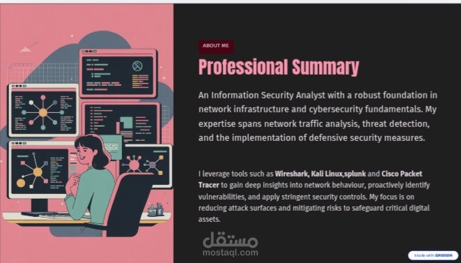 تصميم بورتفوليو احترافي لعرض الأعمال والمشاريع بطريقة منظمة وجذابة تساعد على إبراز المهارات والخبرات.