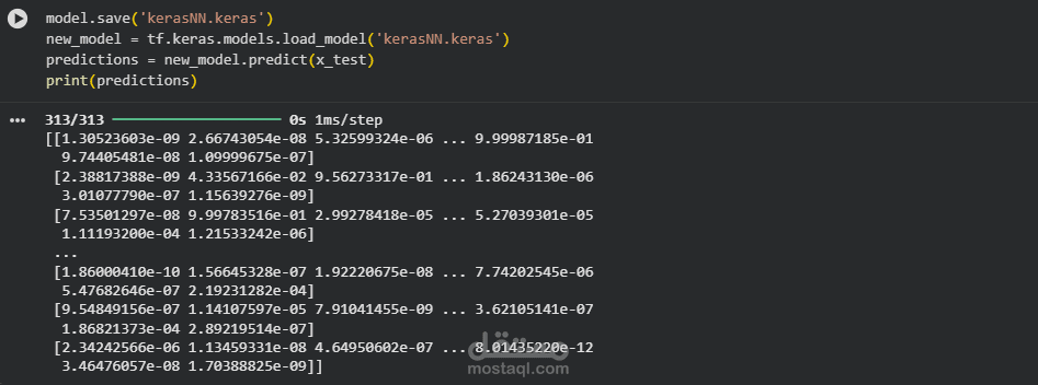 الحفظ: تم حفظ النموذج باسم kerasNN.keras.
