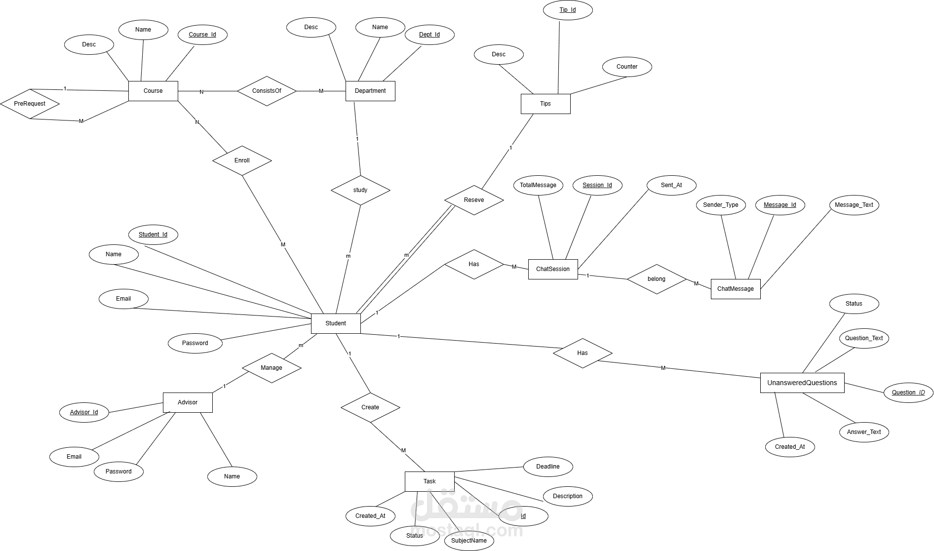 Making an ERD for LMS system with chatbot for student to make relationships between entities.