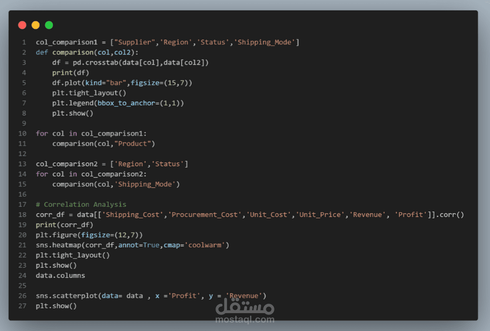 قمت بتنفيذ تحليل شامل لأداء سلسلة الإمداد لشركة تجارية بهدف تقييم الكفاءة التشغيلية والمالية وتحسين الربحية وتقليل التكاليف.