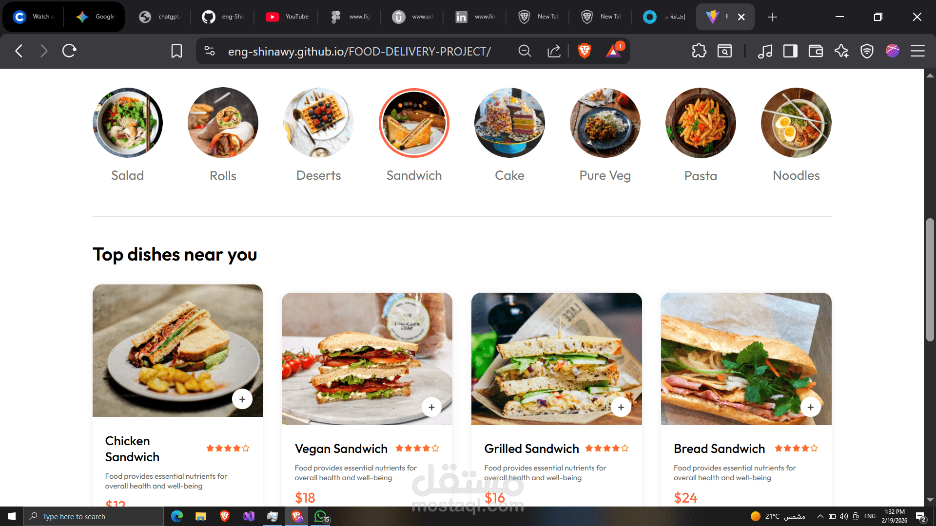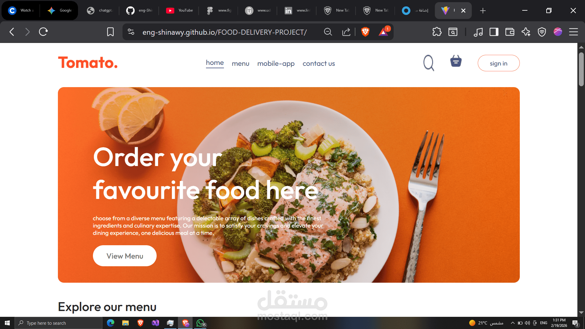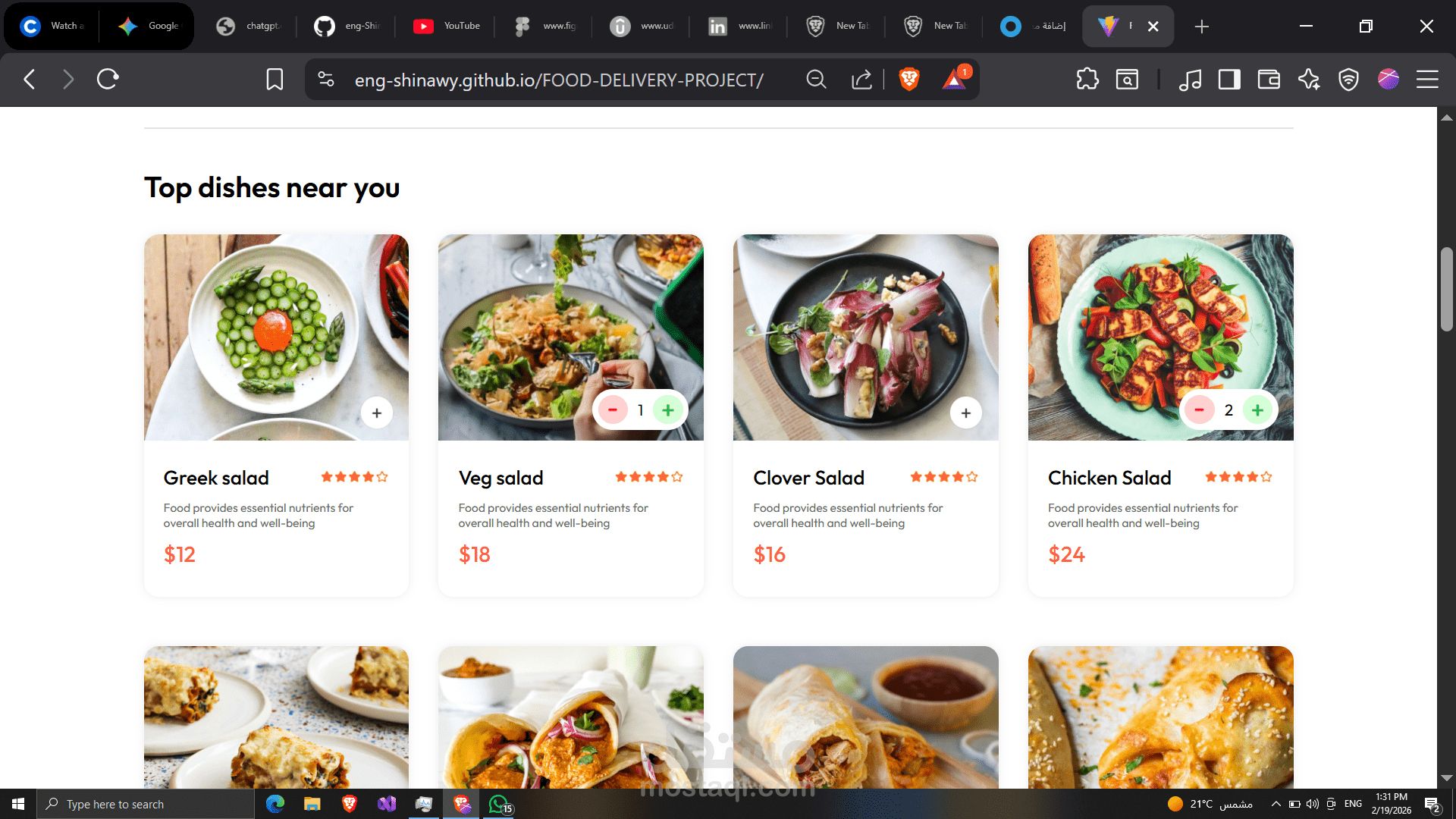 تطبيق ويب متكامل يهدف إلى تسهيل عملية طلب الطعام وتوصيله، تم بناؤه باستخدام تقنيات حديثة لضمان السرعة والكفاءة. المنظومة تتكون من ثلاث واجهات أساسية: واجهة المستخدم (Client)، لوحة تحكم الإدارة (Admin Dashboard)، وخادم خلفي (Backend API) قوي.