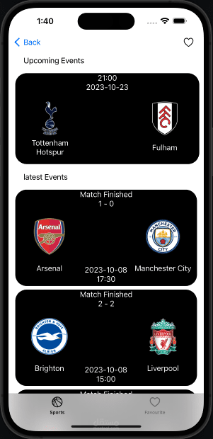 This is an iOS sports application developed as part of an ITI project, showcasing practical mobile development skills using Swift and modern iOS frameworks. The app allows users to explore different sports, view leagues, and access details about upcoming events and latest results.