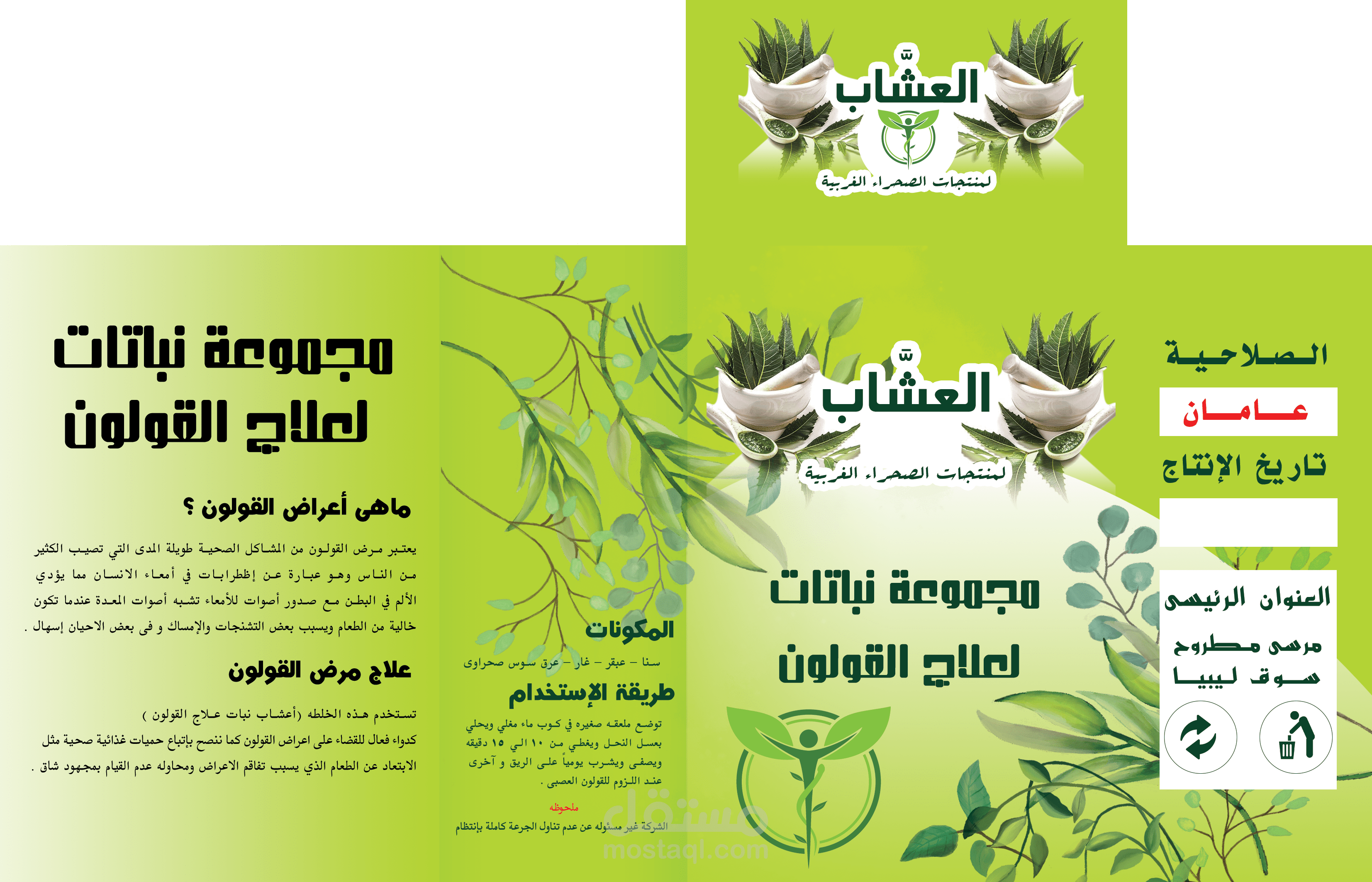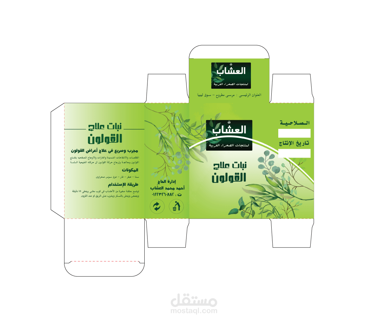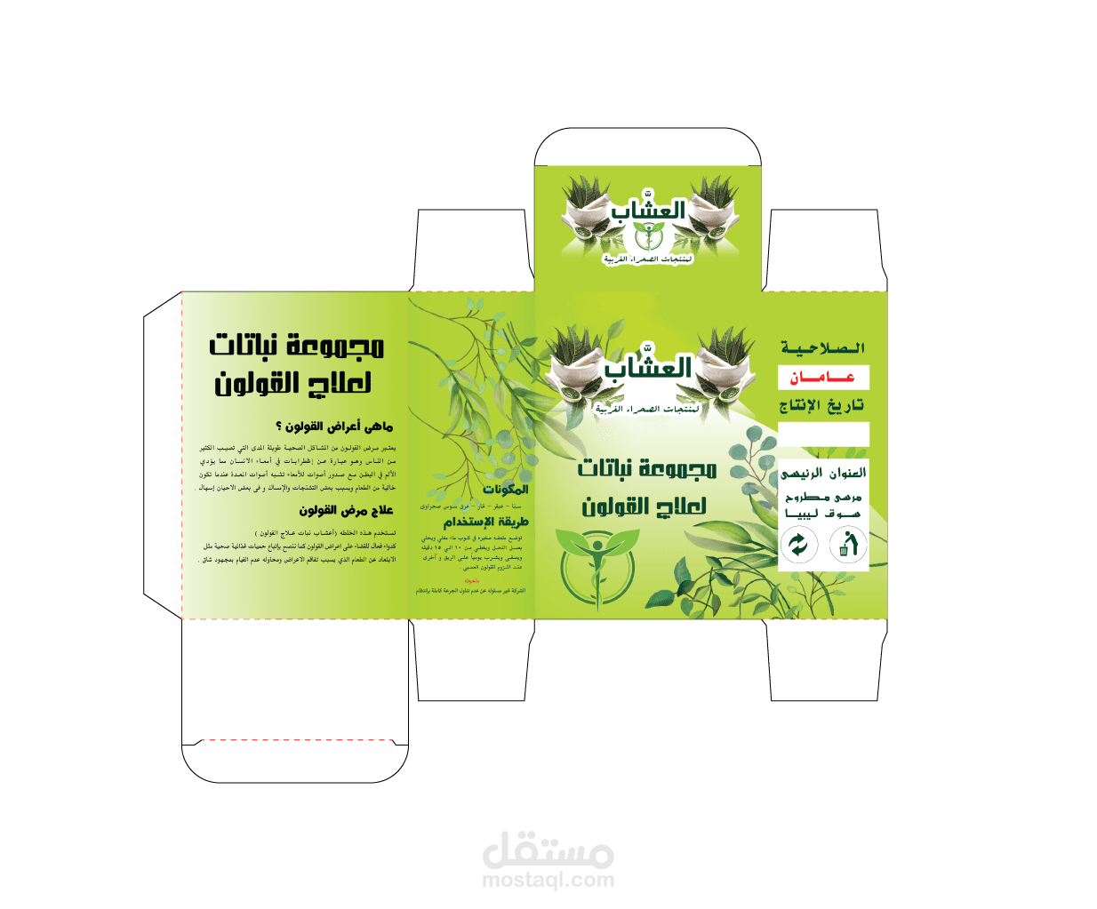 تصميم عبوة منتج اعشاب وعمل الداى كات للمطبعه