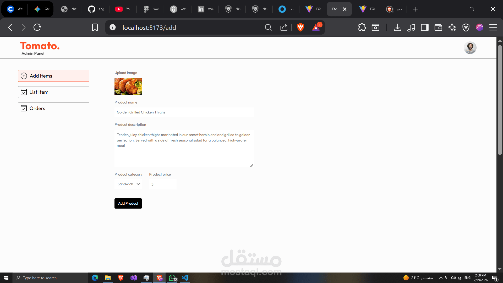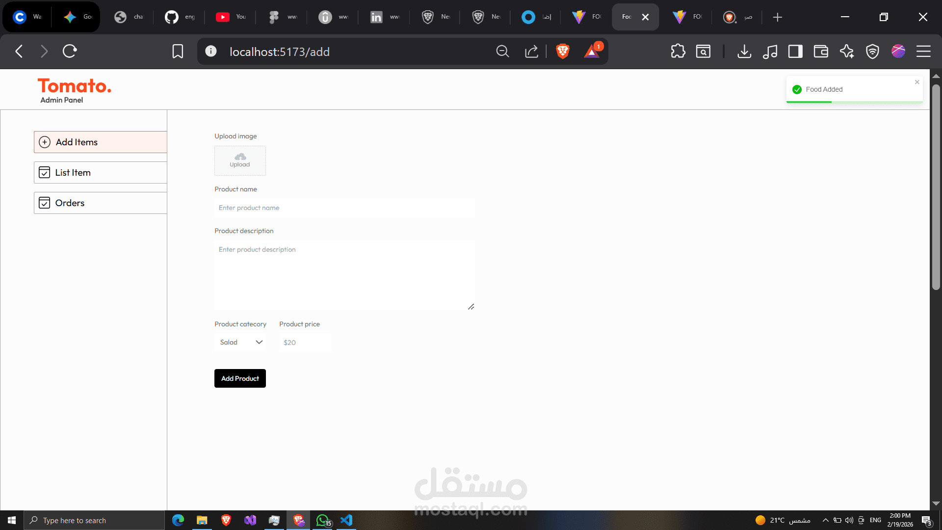 تم تطوير لوحة تحكم (Dashboard) متكاملة لإدارة العمليات اليومية لمطعم أو منظومة توصيل طعام. تم التركيز في هذا المشروع على توفير تجربة مستخدم سلسة للمديرين لمتابعة الأداء لحظياً والتحكم في كافة موارد النظام.