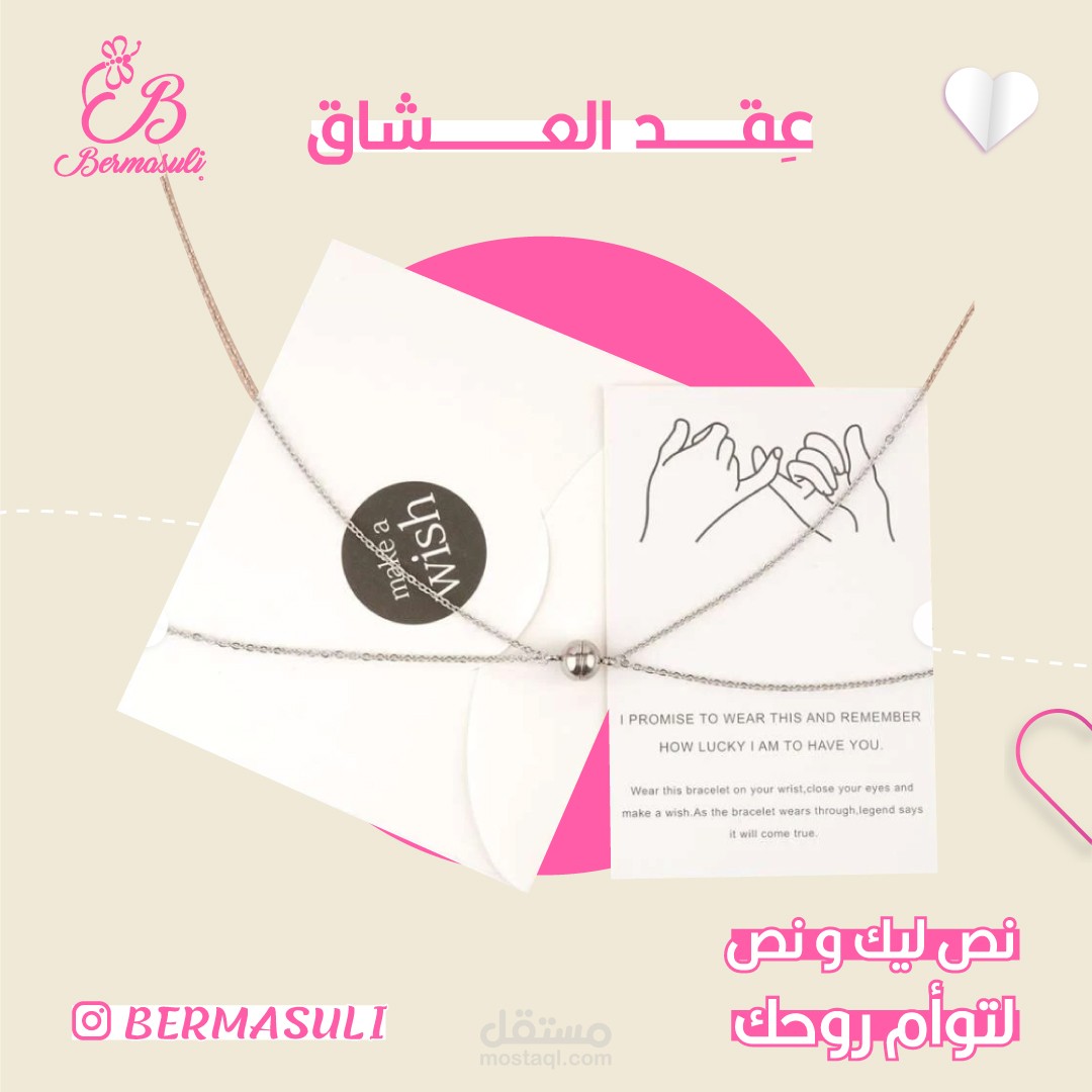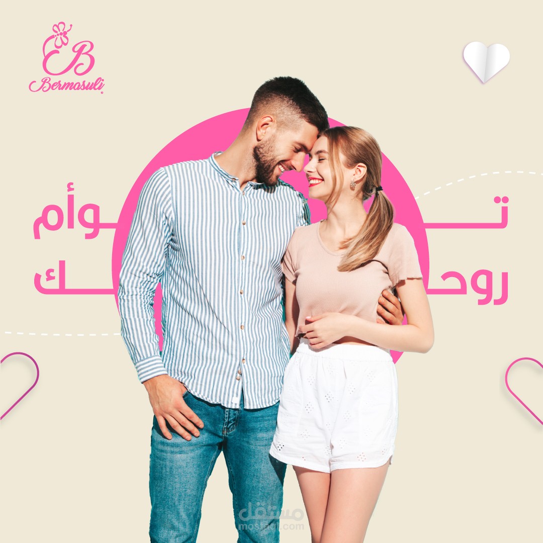 تصميم سوشيال ميديا متكامل بأسلوب Carousel مخصص لعرض إكسسوارات الأزواج بطريقة رومانسية وعصرية.