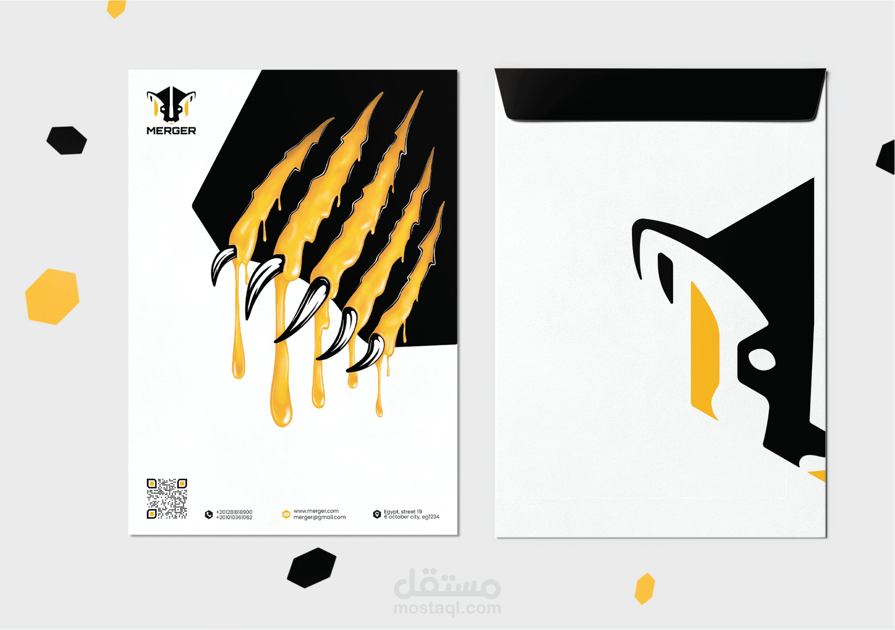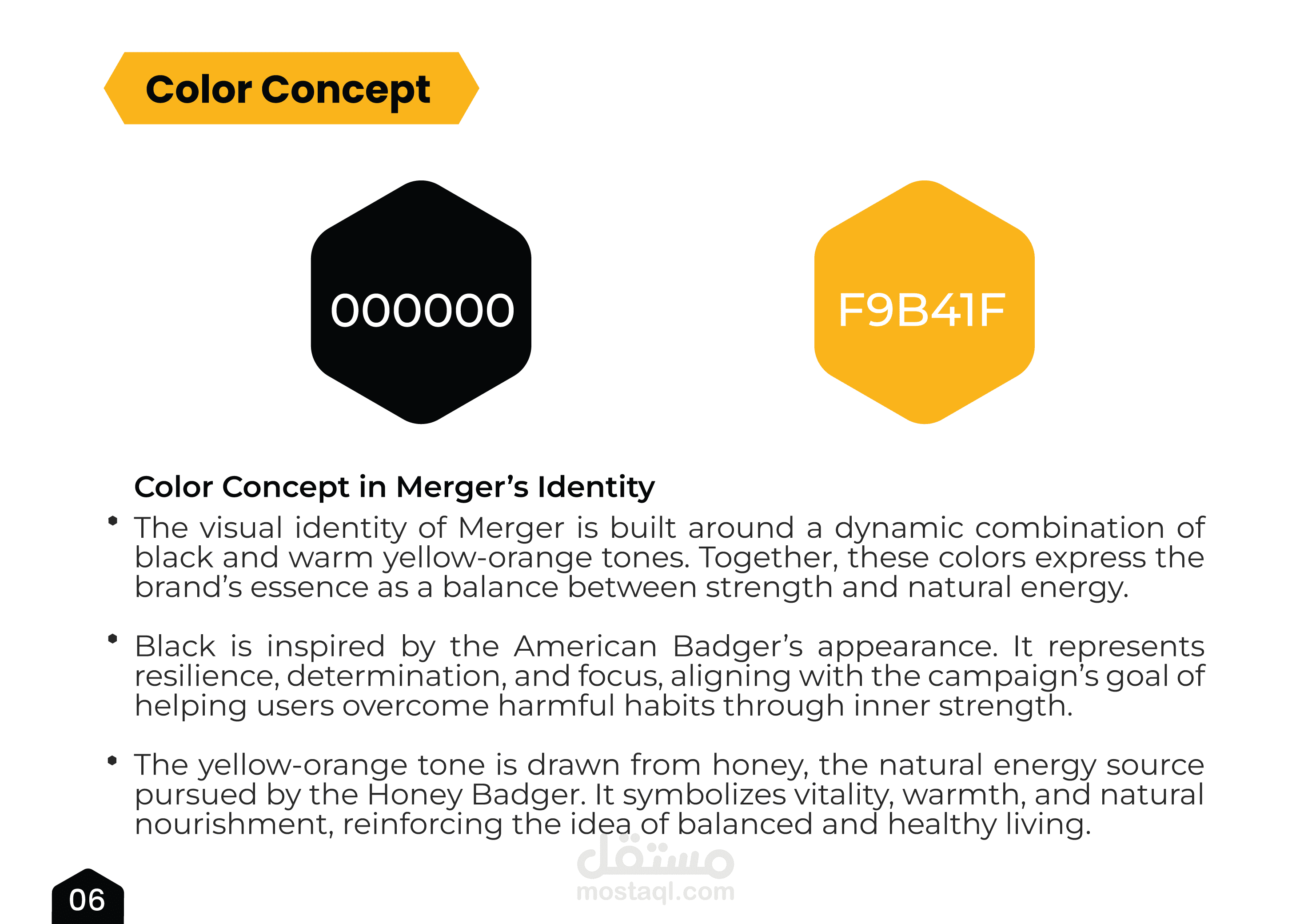 • يجمع شعار Merger بصريًا بين رأس غرير أمريكا، الذي يرمز إلى القوة والعزيمة، وبين نمط خلية العسل المستوحى من سلوك غرير العسل، الذي يتغذى على العسل كمصدر طبيعي للطاقة والتغذية.