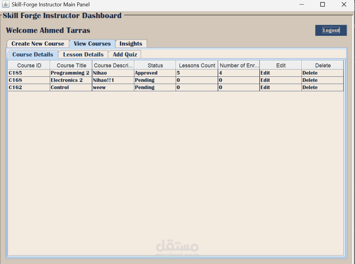 يركز المشروع على تنظيم الأدوار والصلاحيات (Role-Based Access)، وبناء هيكل قابل للتوسع يتيح إضافة ميزات مستقبلية بسهولة، مع واجهة مستخدم تفاعلية تسهّل تجربة التعلم والمتابعة. يعكس هذا المشروع قدرتي على تصميم أنظمة متعددة المستخدمين، وإدارة الصلاحيات، وبناء منطق أعمال (Business Logic) منظم وواضح.