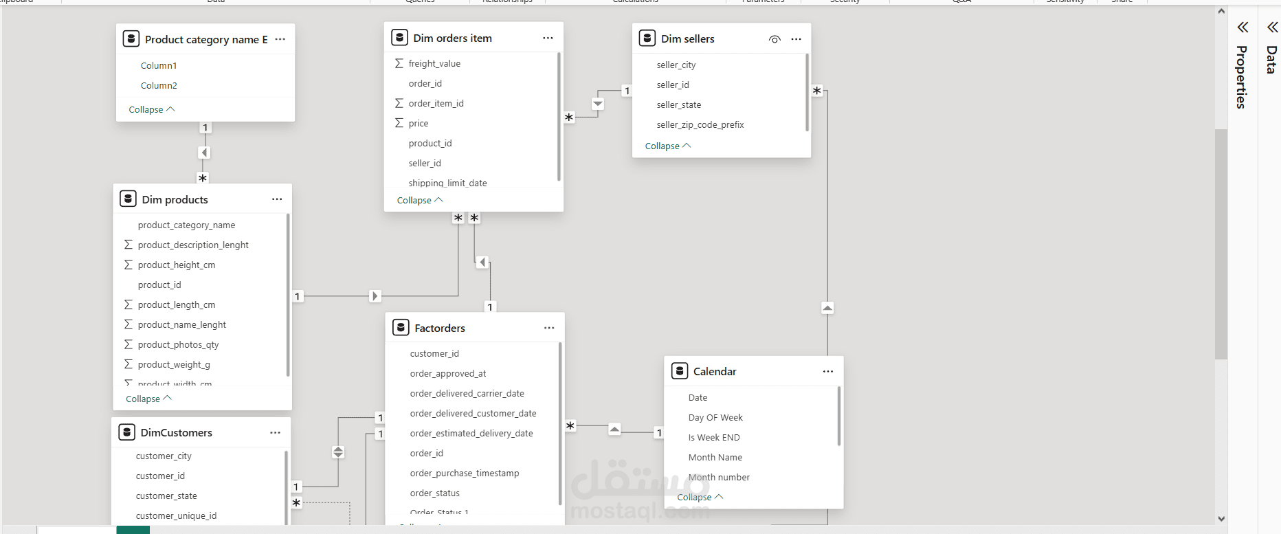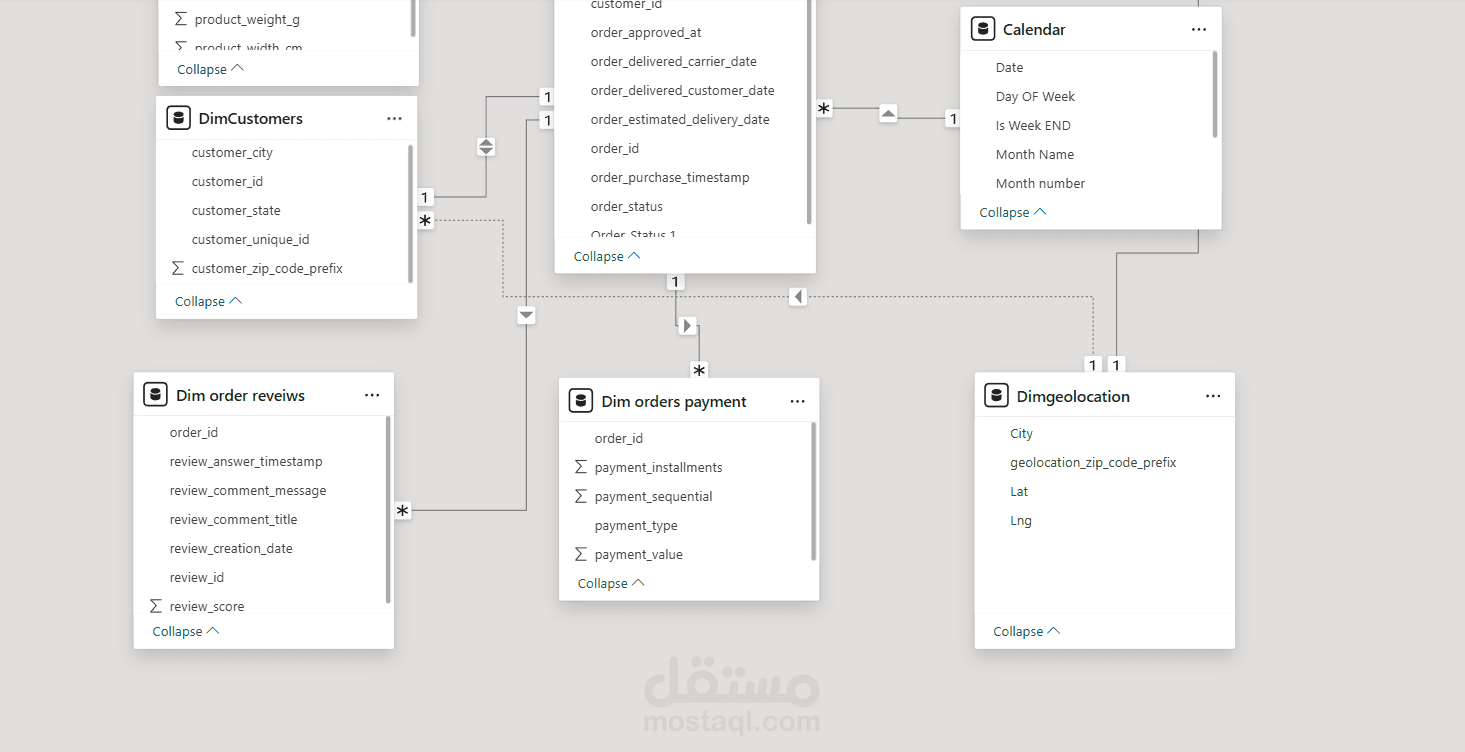 Data Modeling: تصميم Star Schema لربط 9 جداول مختلفة بفعالية.