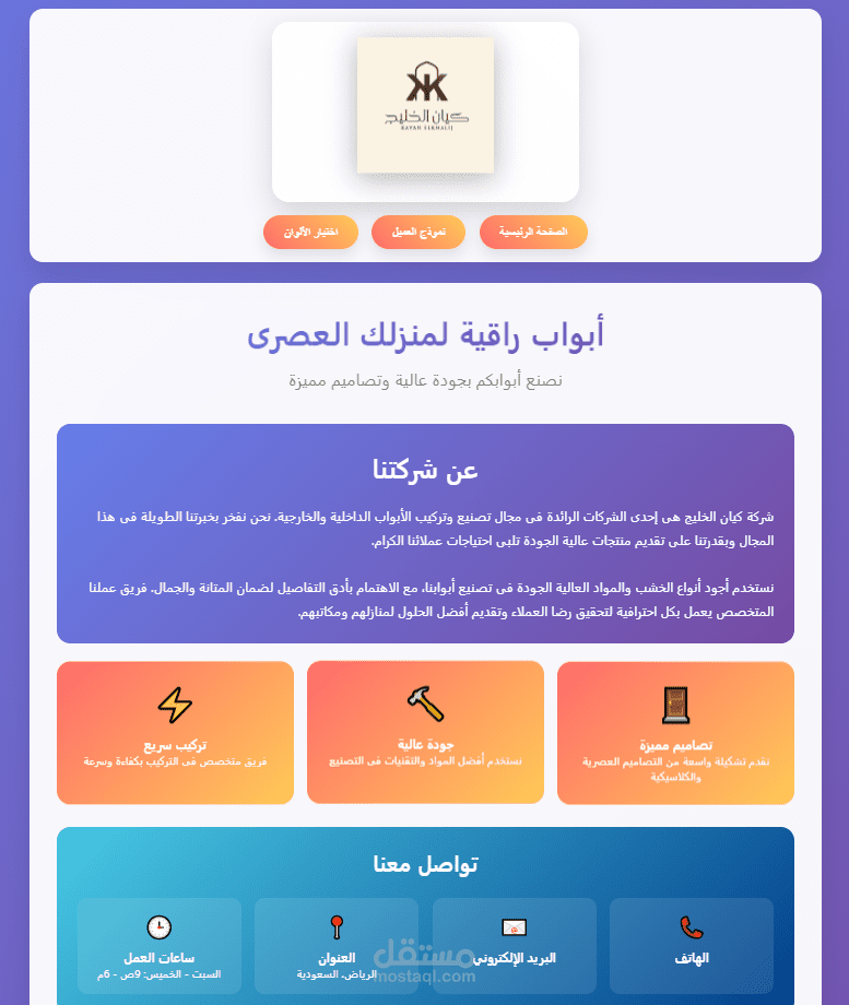 موقع لشركة متخصصة فى تصميم الأبواب، يتضمن الموقع خاصية اختيار لون الحائط من قبل العميل او الشركة ويقوم الموقع بترشيح لون الباب الملائم ل لون الحائط.