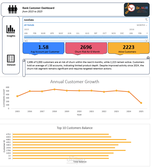 By transforming raw multi-year datasets into structured data models and executive-ready dashboards, I delivered a centralized decision-support system that reveals trends, detects anomalies, highlights churn risks, monitors portfolio exposure, and tracks operational efficiency.