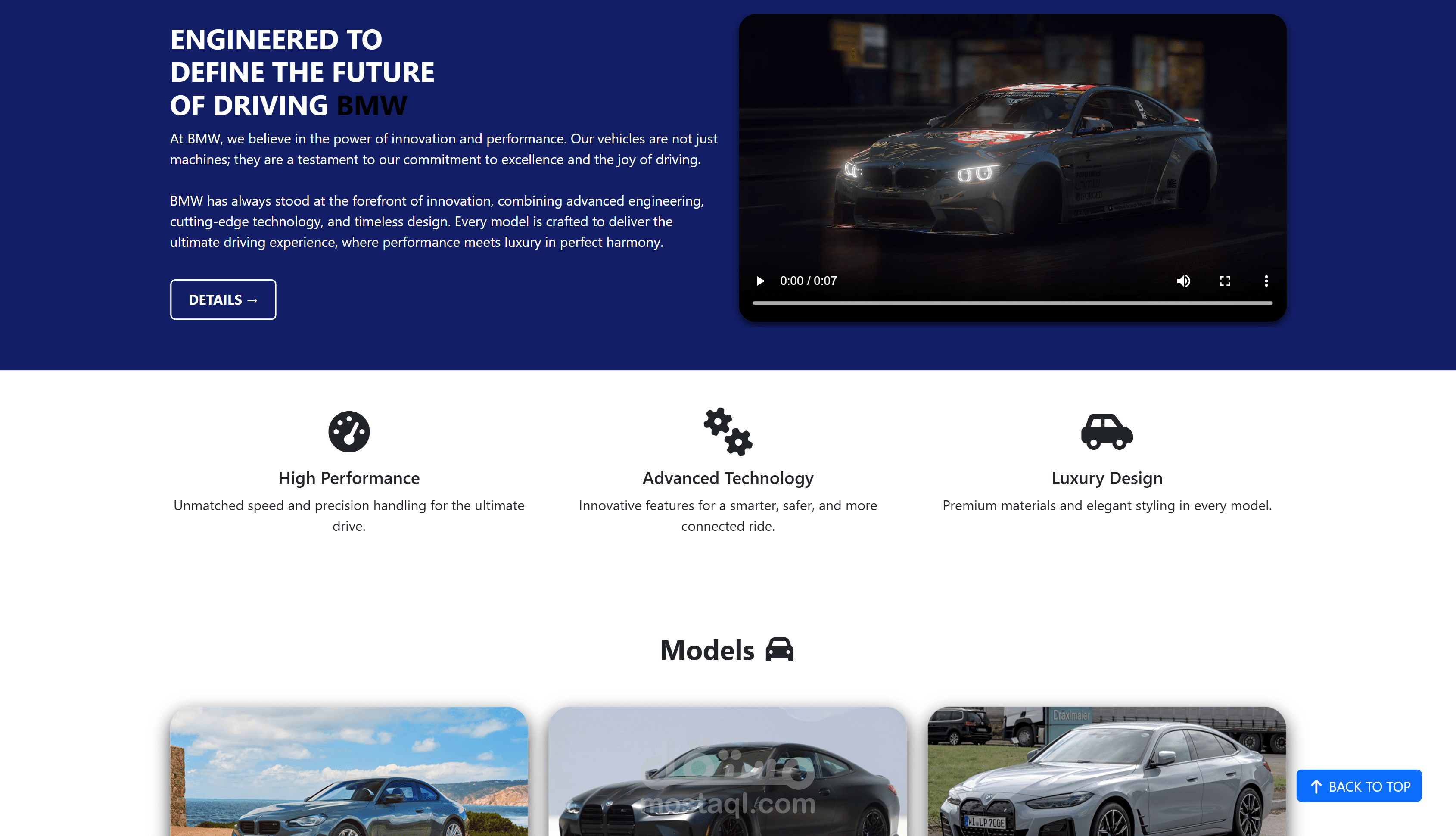 A modern and responsive BMW-inspired frontend website showcasing premium design and smooth user experience.