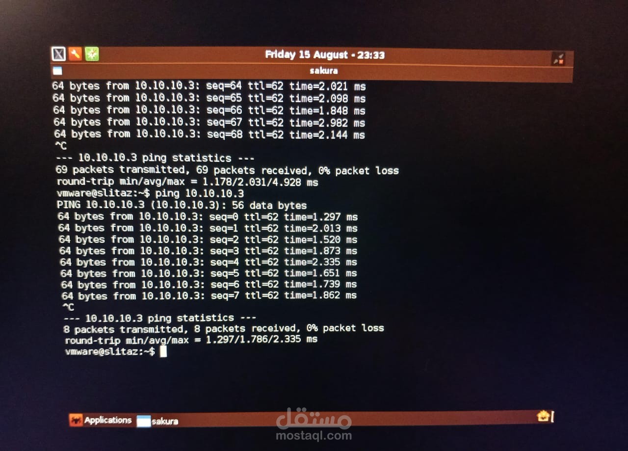 Assigned IP addresses on all ports and devices across 3 network segments (vmnet0, vmnet2, vmnet3)