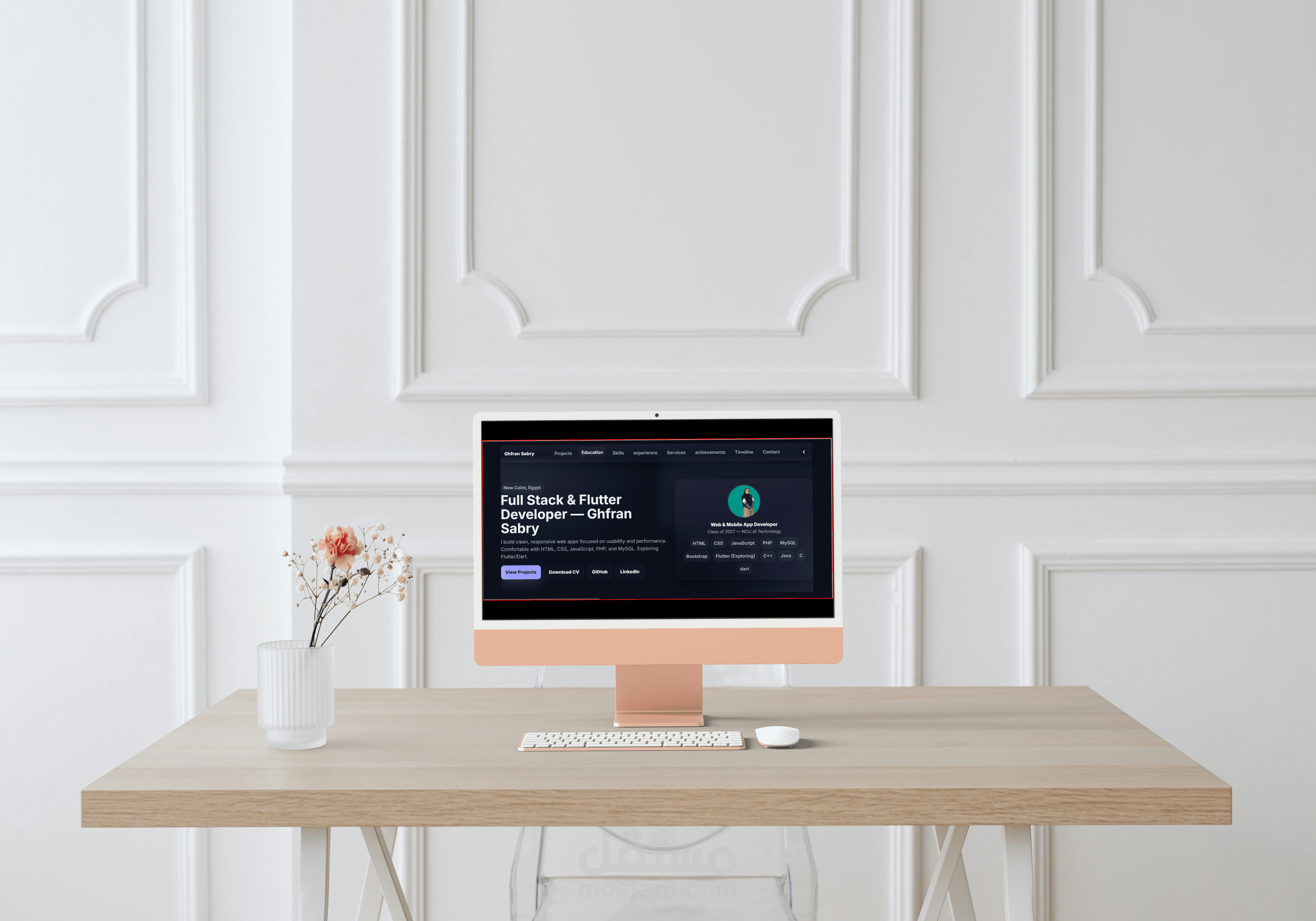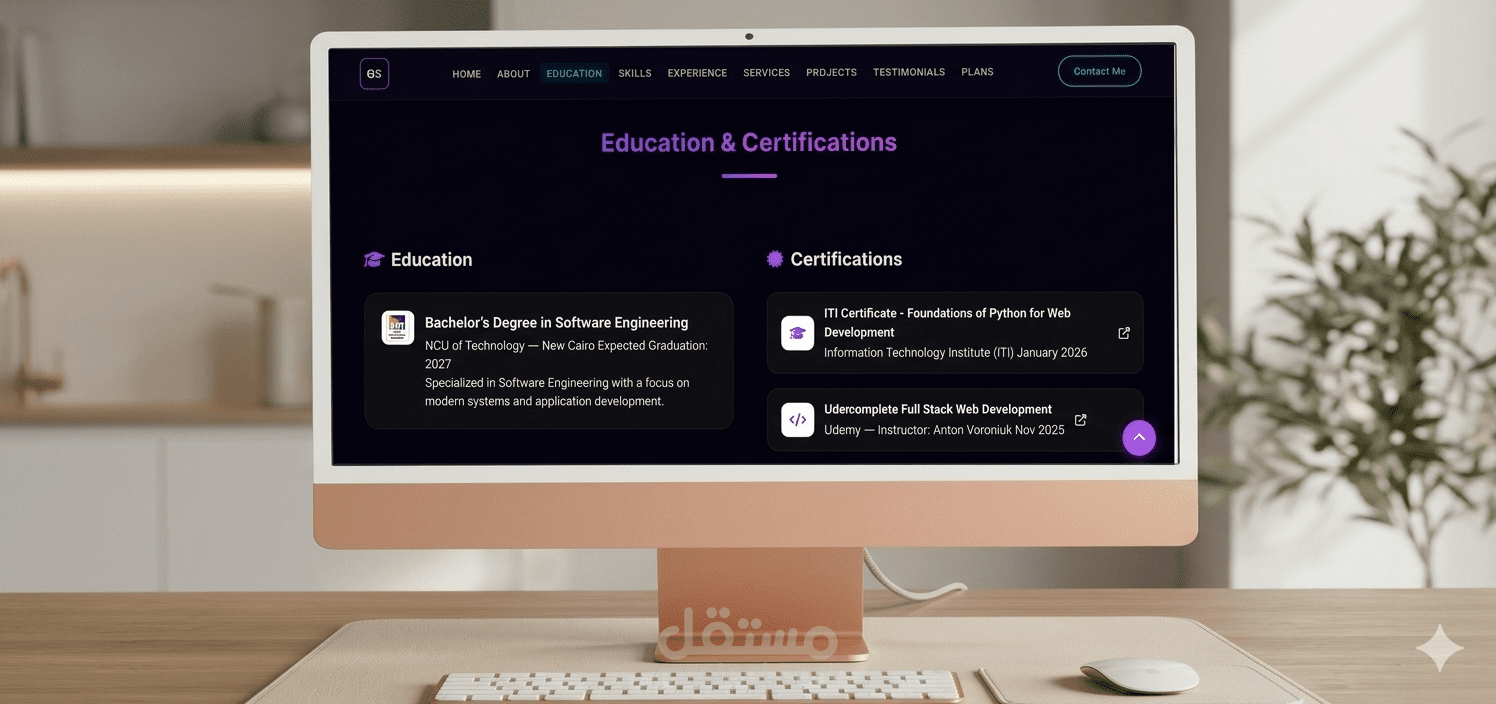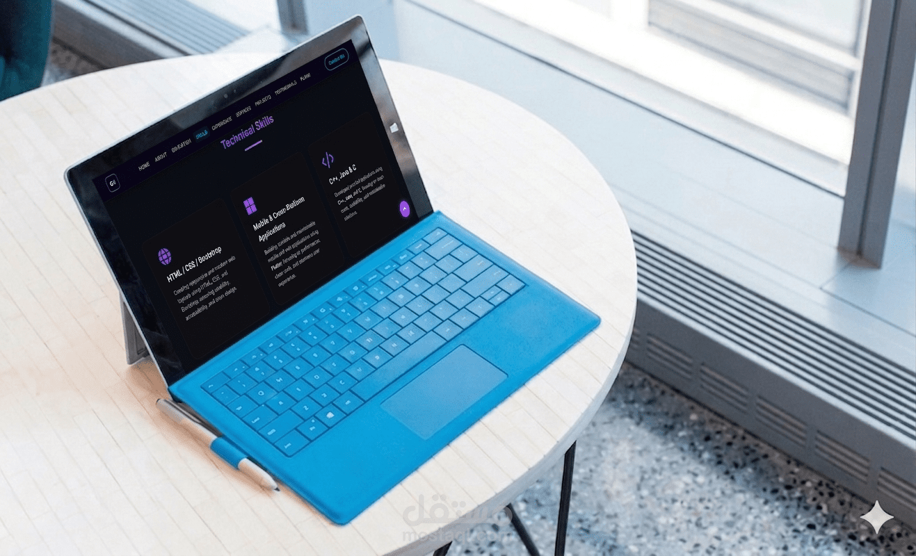 موقع شخصي تفاعلي تم تصميمه لعرض مشاريعي ومهاراتي وخبراتي في مجال تطوير مواقع الويب.