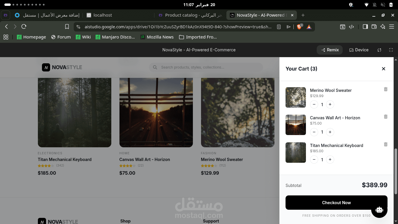 A modern, high-end online store featuring AI-assisted product discovery, dynamic cart management, and a sleek, responsive UI.