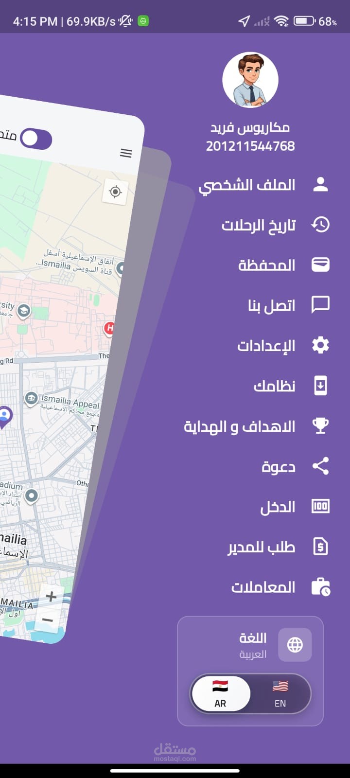 نظام تسجيل دخول آمن وإدارة حساب السائق.