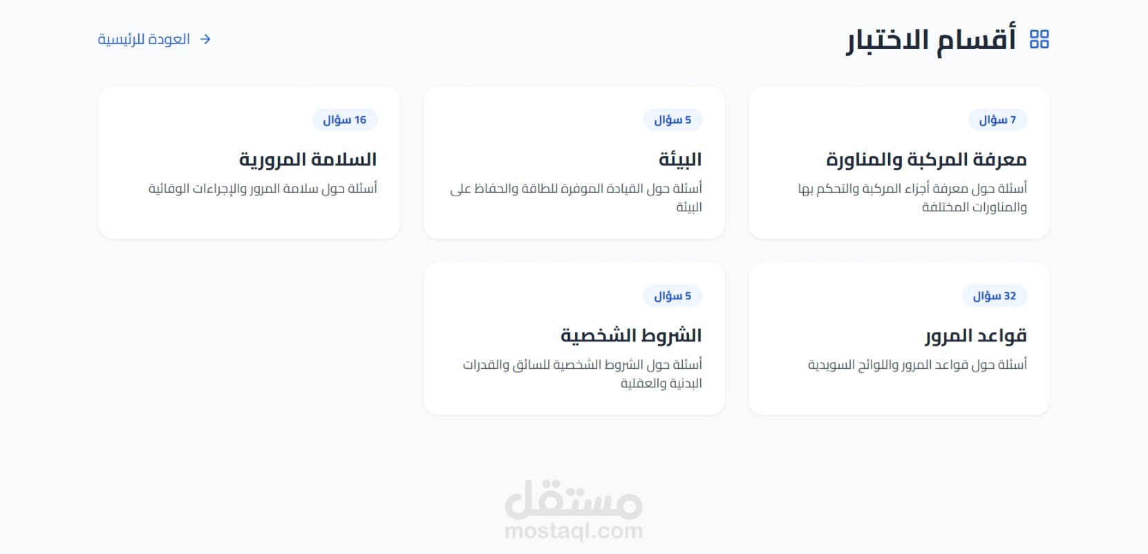 نظام الاختبار الذكي (Smart Testing System): برمجة خوارزمية تختار 65 سؤالاً عشوائياً من قاعدة بيانات ضخمة لضمان تنوع المحتوى في كل محاولة.