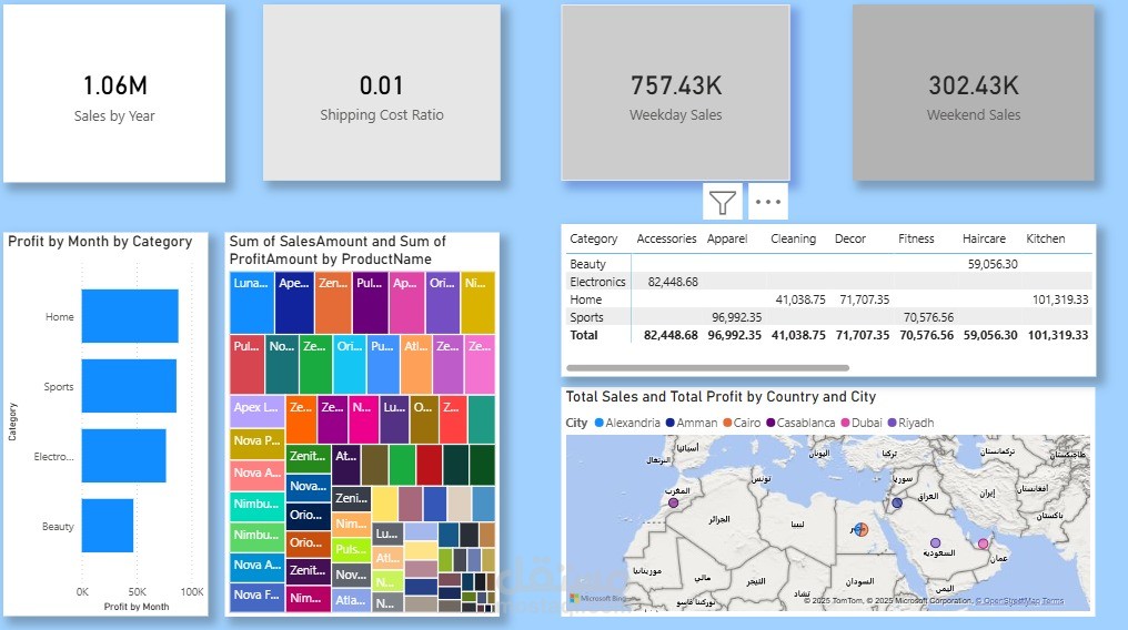 تحليل أداء المبيعات وتصميم لوحات معلومات تفاعلية (Sales Dashboard) لقياس أداء فرق المبيعات وتتبع الإيرادات وتحقيق الأهداف.