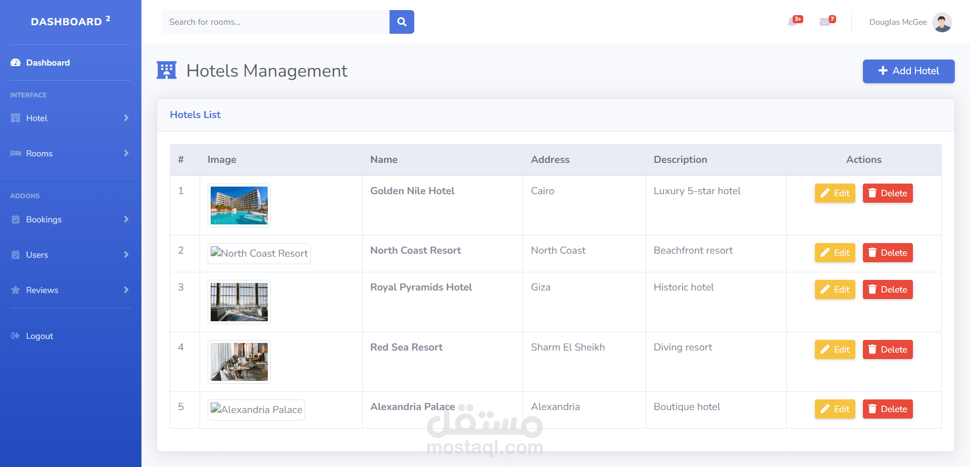 مع امكانية اضافة وتعديل وحذف جميع الاقسام