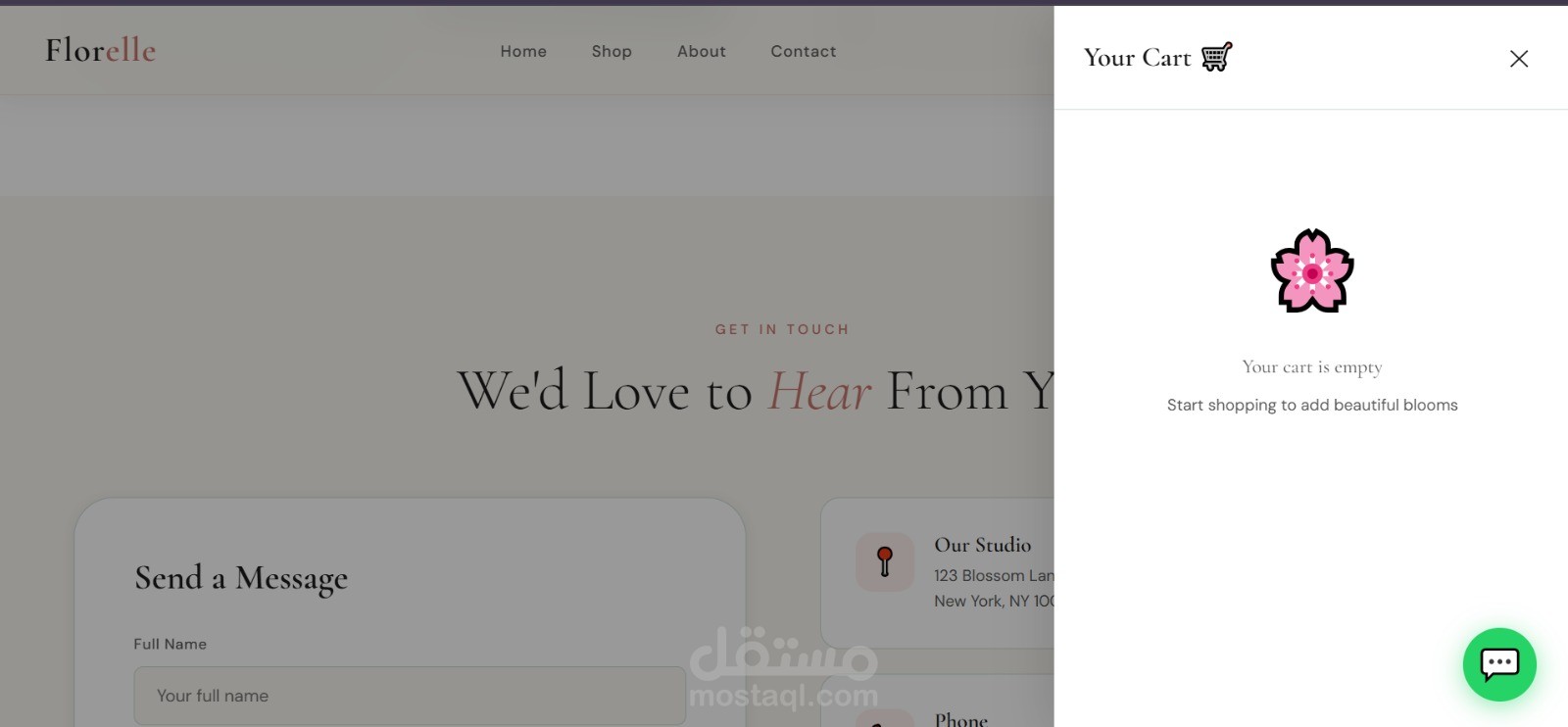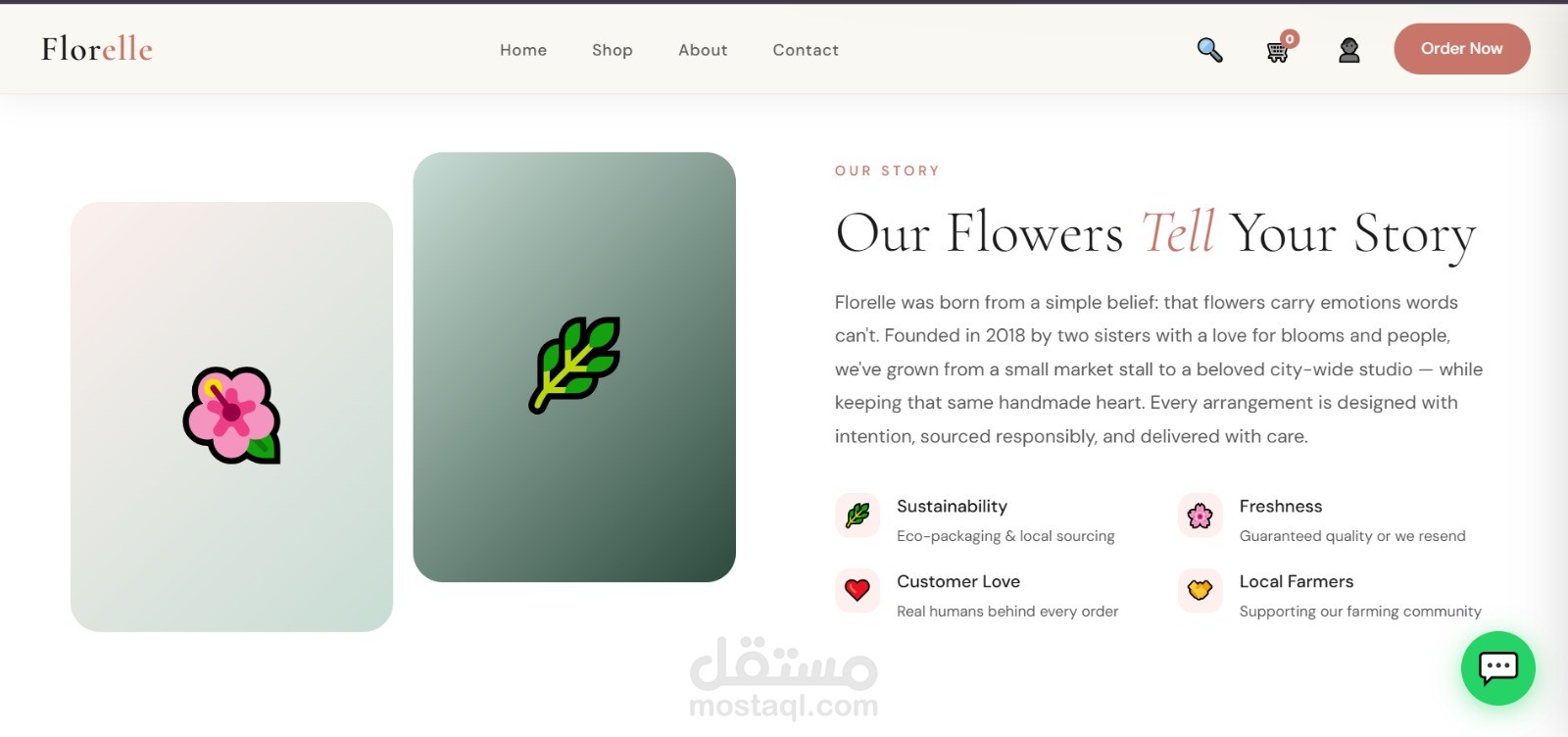 تصميم أنيق بألوان هادئة تناسب مجال الزهور والهدايا.