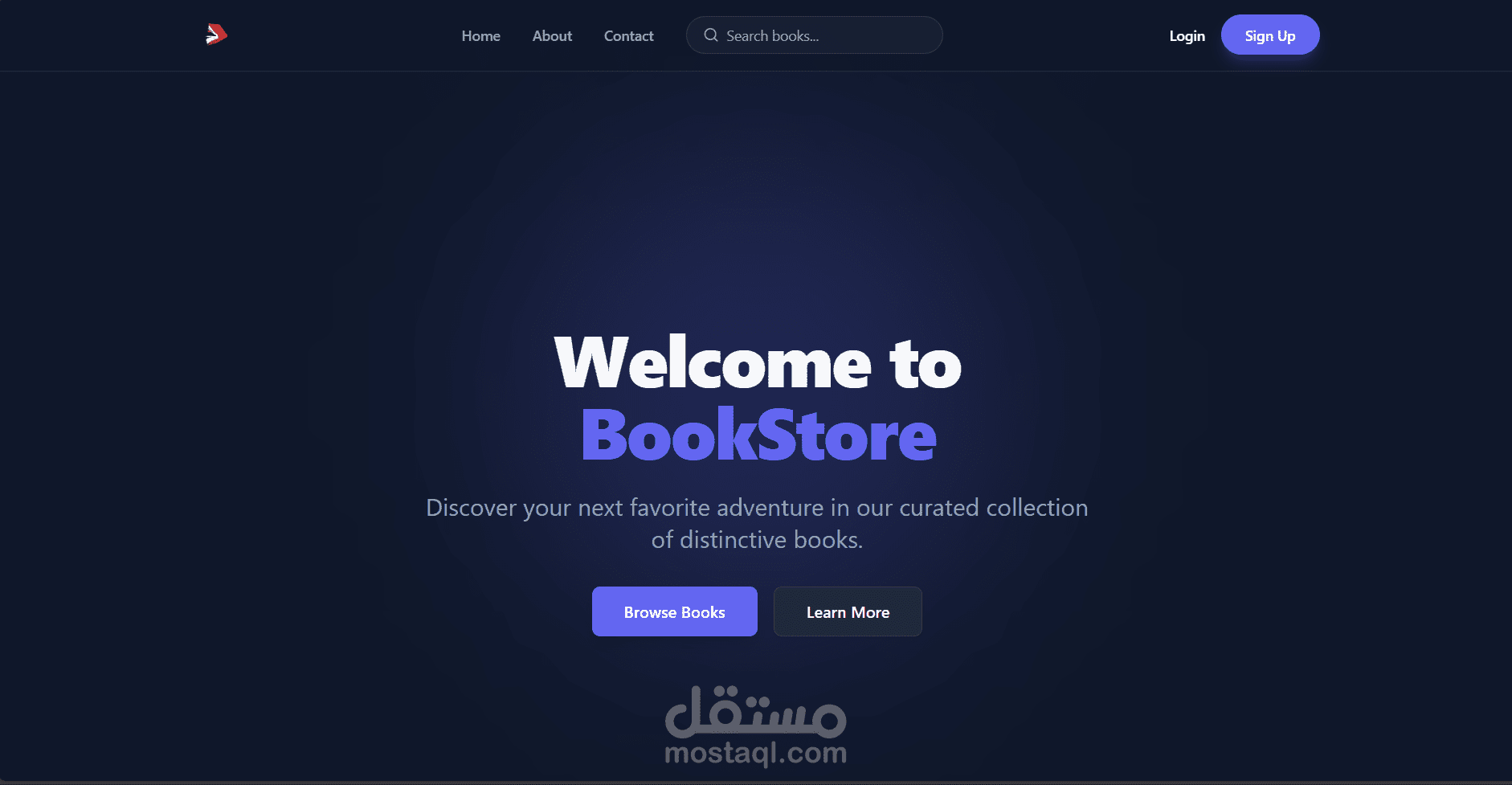 تطبيق متجر كتب متكامل تم تطويره باستخدام React.js و Tailwind CSS في الواجهة الأمامية، و Node.js و Express في الخادم الخلفي، مع استخدام MongoDB لإدارة قاعدة البيانات.