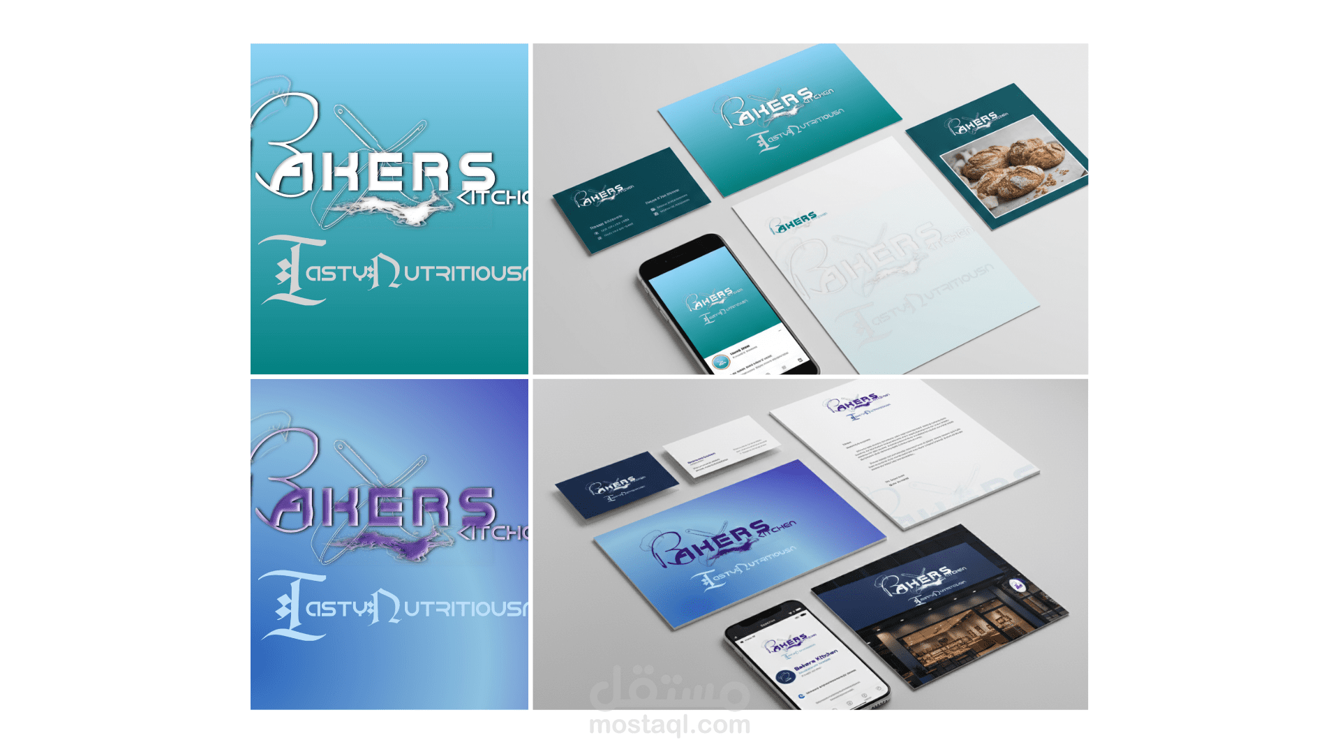 شعار يجمع بين الخطوط الانسيابية اليدوية (Script) والخطوط الهندسية الحديثة، حيث تم دمج الحروف مع عناصر بصرية تعبر عن هوية المطبخ (قبعة الطاهي وأدوات العجن). يعكس روح الإبداع واللمسة الإنسانية في فن المخبوزات مع الحفاظ على وضوح الاسم وقوته البصرية.
