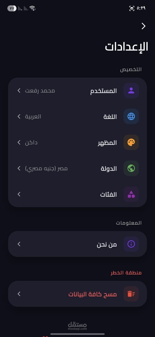 هذا التطبيق هو تطبيق لادارة المصروفات الخاصة بي المستخدم