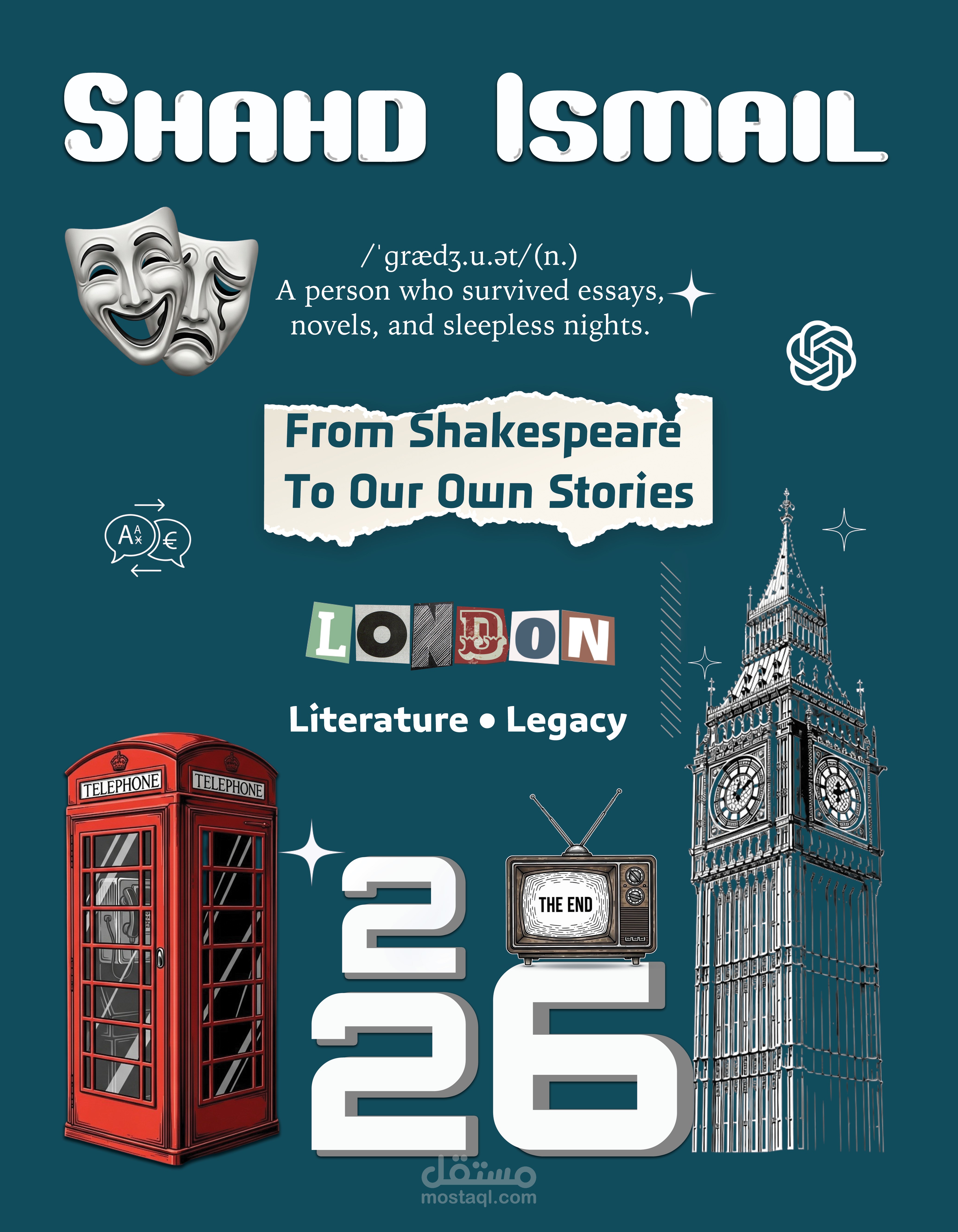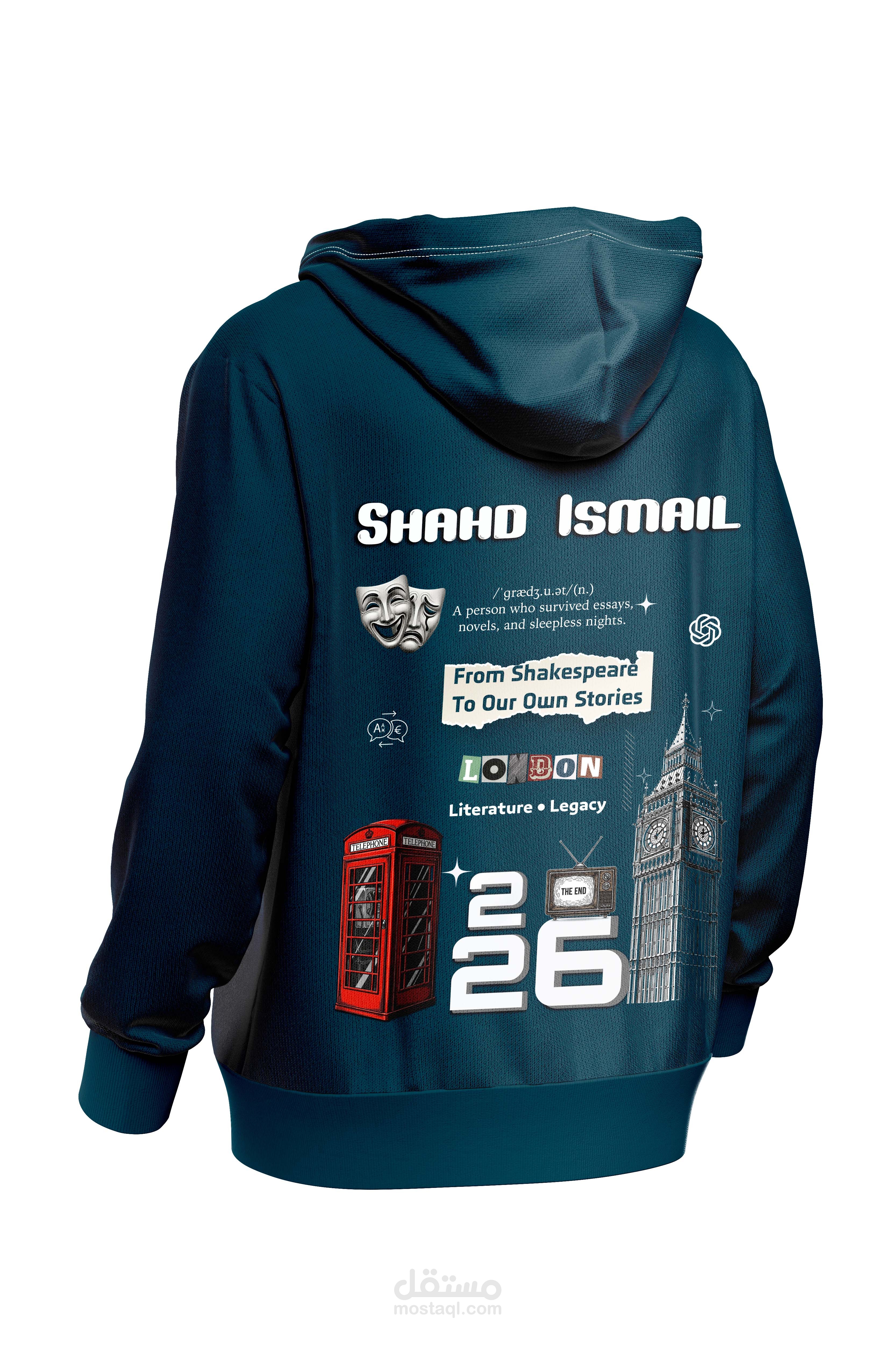"قمت بتصميم هودي تخرج احترافي مخصص لدفعة كلية الآداب قسم اللغة الانجليزية، حيث تم تنفيذ التصميم بأسلوب عصري يعكس روح الفريق والانتماء. شمل المشروع تصميم الواجهة الأمامية والخلفية للهودي، مع توزيع العناصر البصرية بشكل متوازن ومدروس ليتناسب مع الطباعة على الملابس.