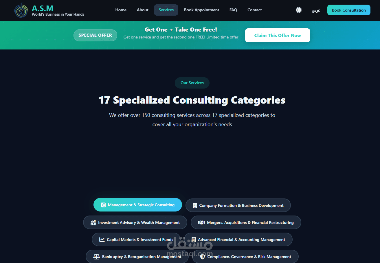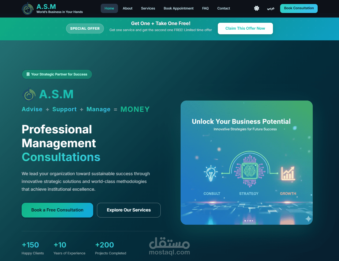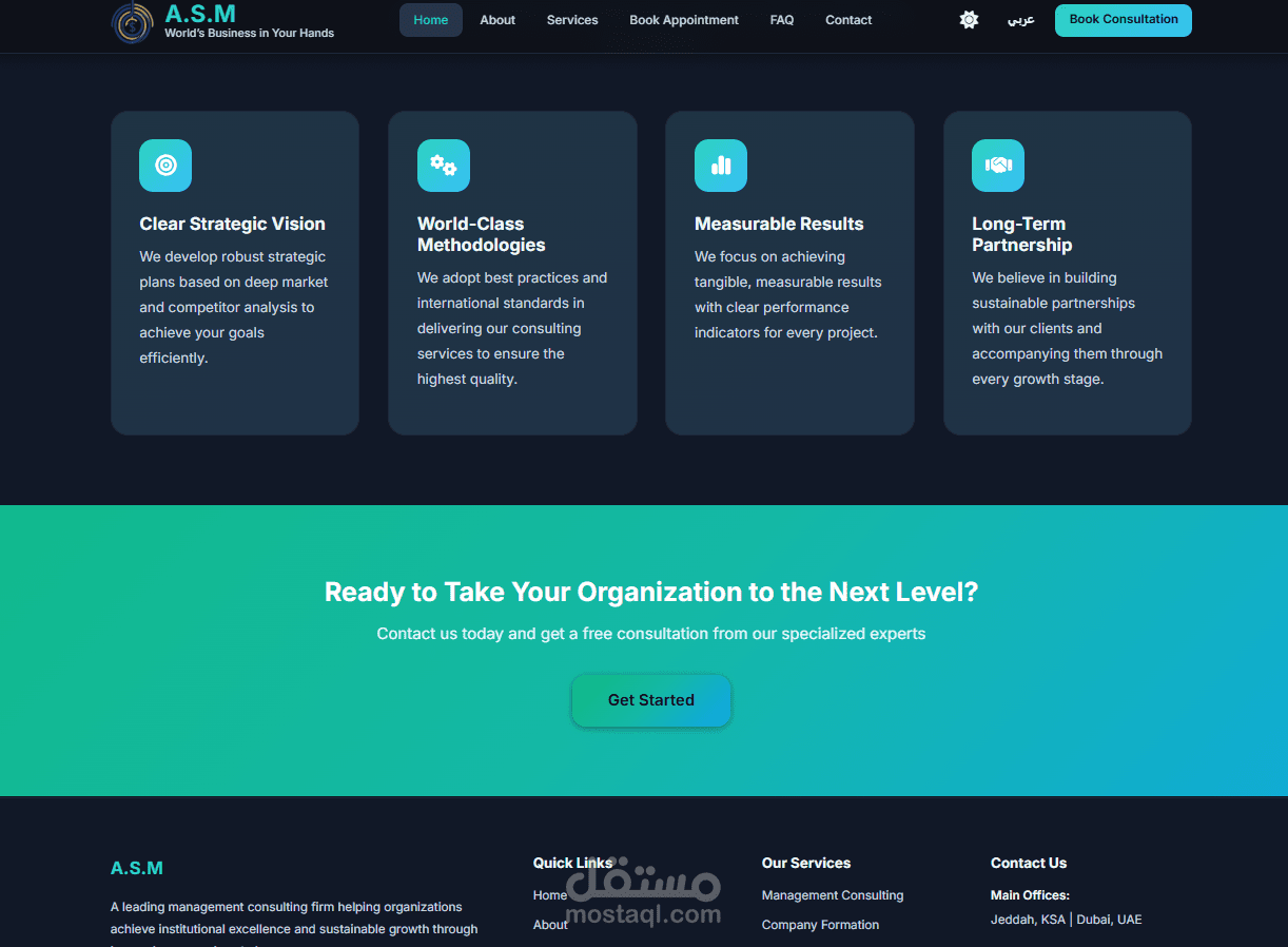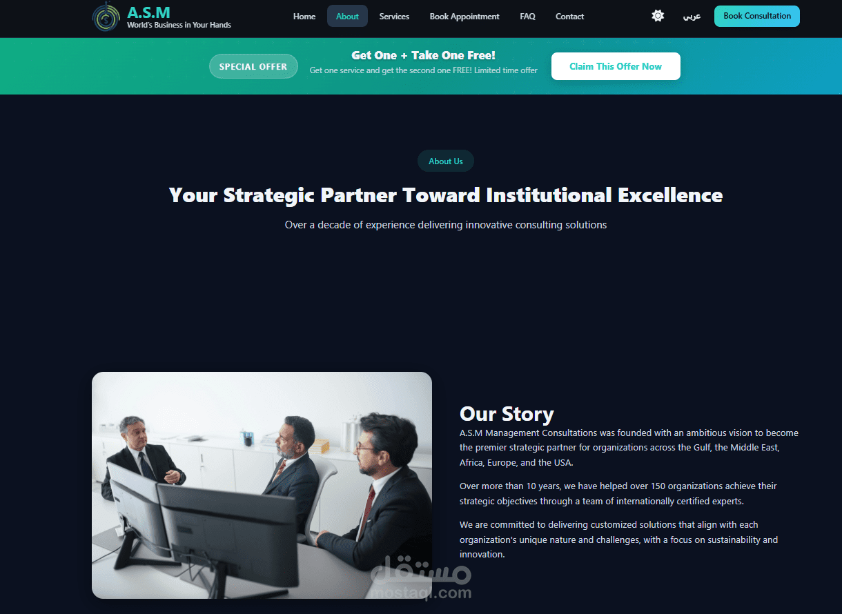 ASM Management Consultations هو موقع احترافي متخصص في تقديم الاستشارات الاستثمارية والإدارية، يهدف إلى تمكين رواد الأعمال والشركات والمستثمرين من اتخاذ قرارات استراتيجية ومالية مدروسة تدعم النمو المستدام وتعزز القدرة التنافسية في الأسواق.