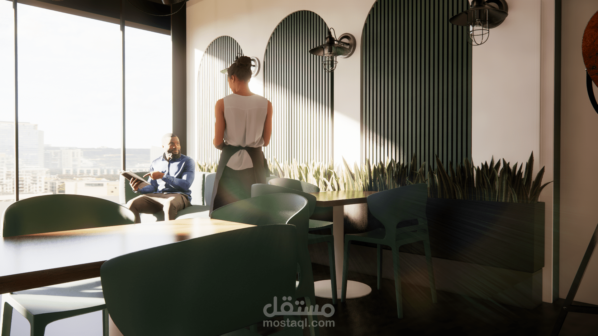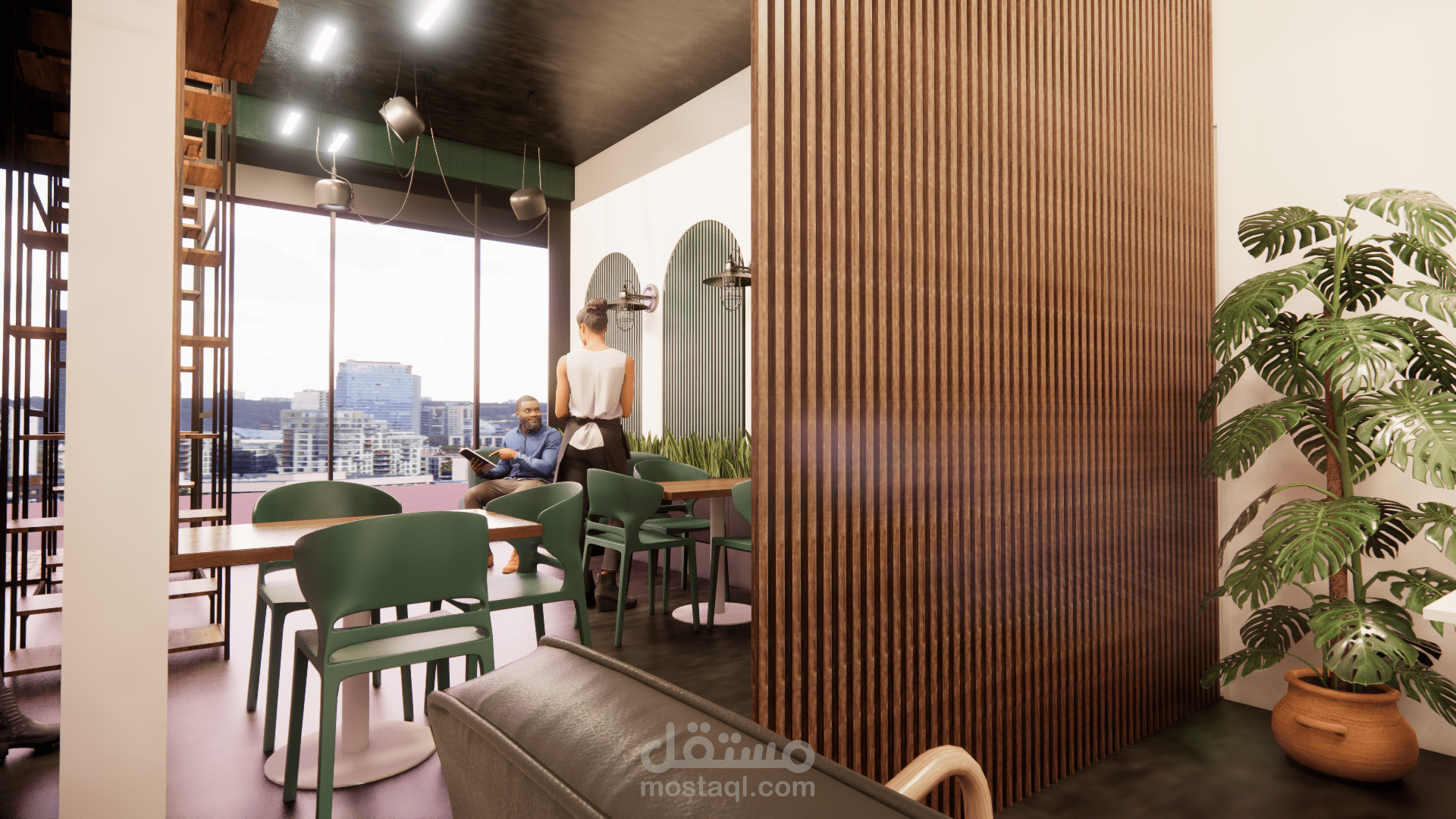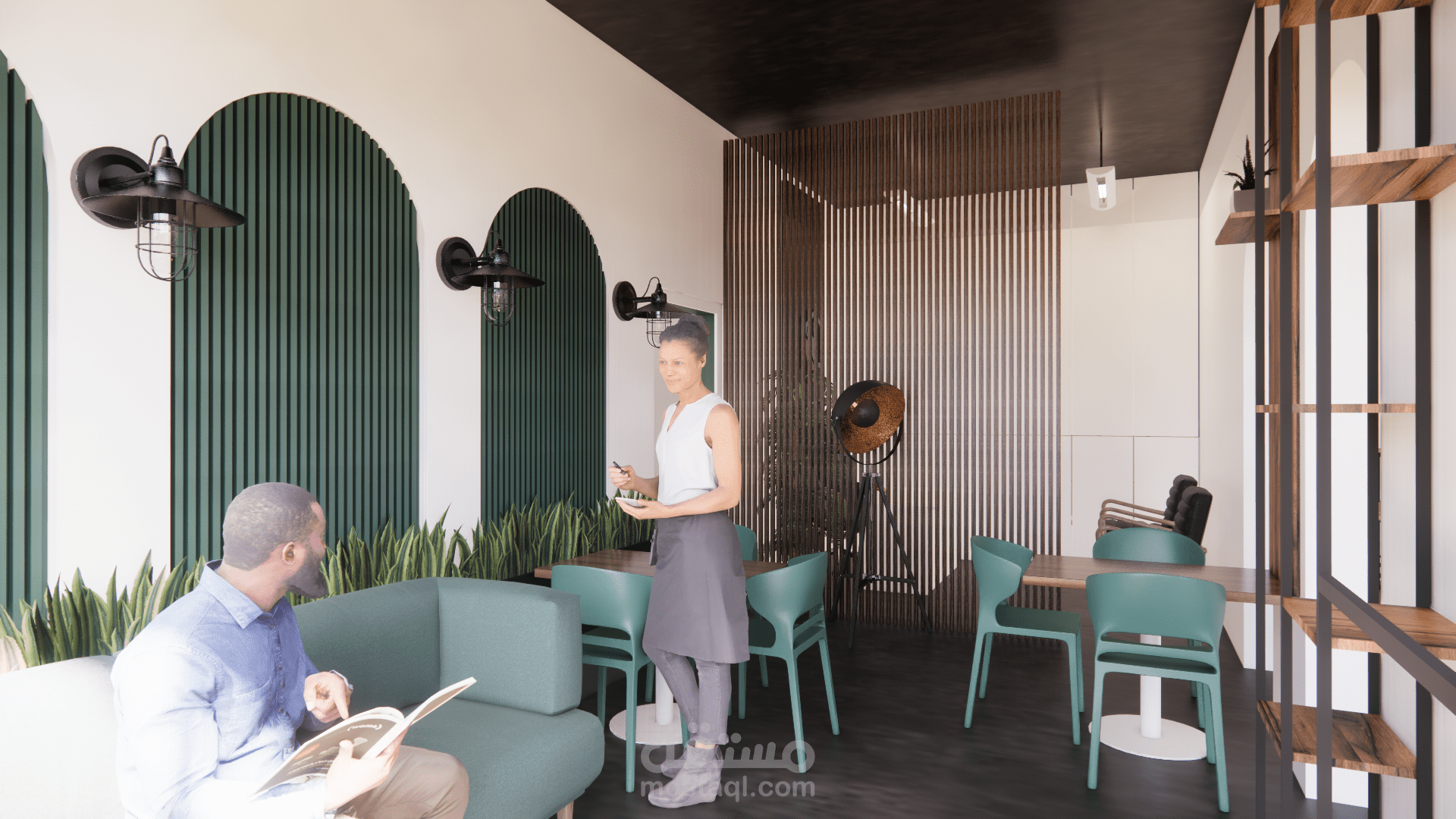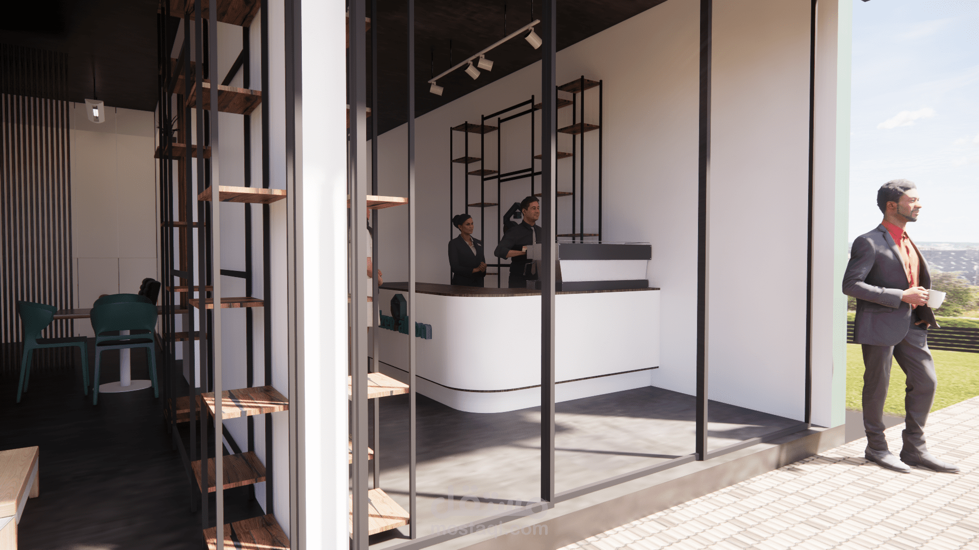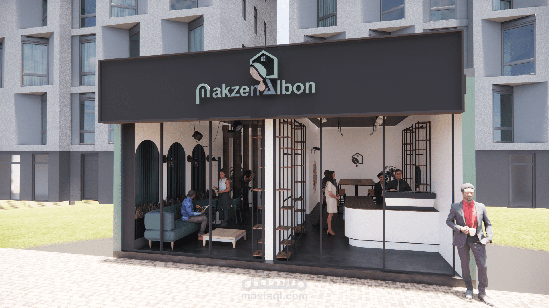 إعداد التصاميم الداخلية والخارجية وفق مفهوم وهوية المقهى
