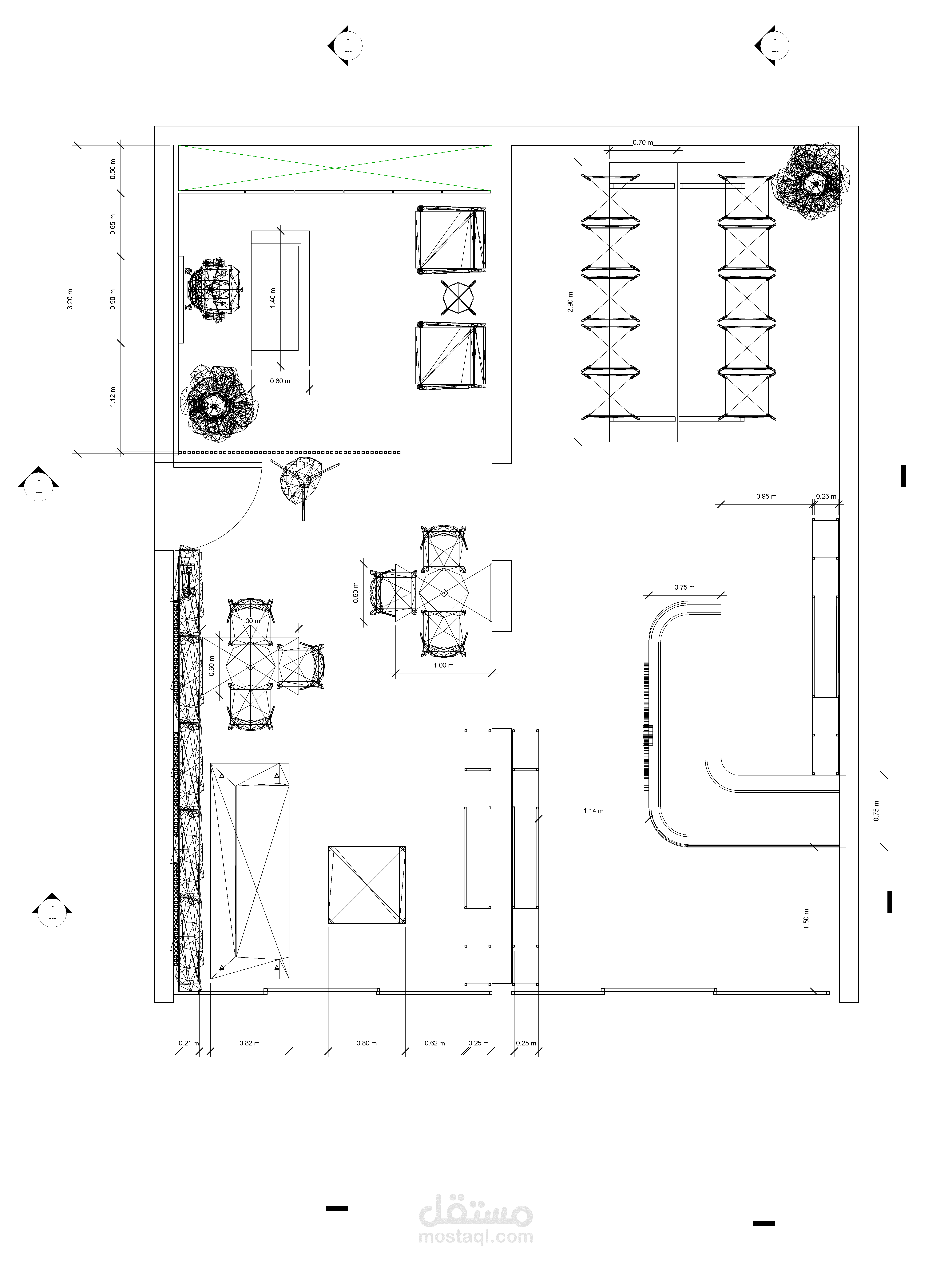 نقدّم حلول تصميم مقاهي متكاملة تجمع بين الإبداع والوظيفية، بدءًا من دراسة الهوية والعلامة التجارية، مرورًا بإعداد التصاميم ثلاثية الأبعاد (3D Visualization) التي تعكس الأجواء الواقعية للمشروع، وصولًا إلى المخططات المعمارية والتنفيذية التفصيلية الجاهزة للتطبيق في الموقع.