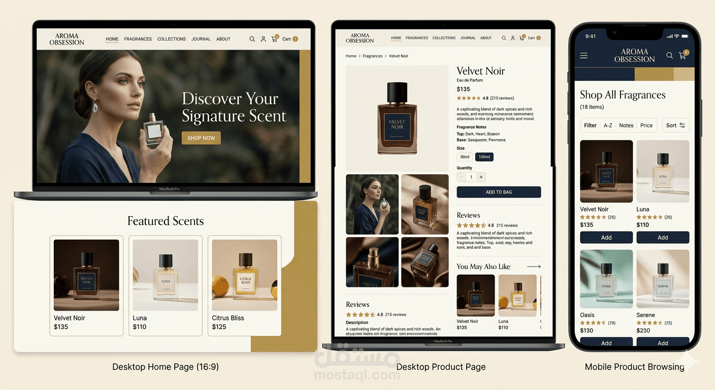 قمنا بتطوير منصة تجارة إلكترونية للعطور الفاخرة، مع التركيز على الأداء وقابلية التوسع. بنى فريقنا واجهة المستخدم باستخدام React لتوفير تجربة مستخدم سلسة، بينما اعتمدنا NestJS على الواجهة الخلفية لضمان بنية API آمنة وقوية.
