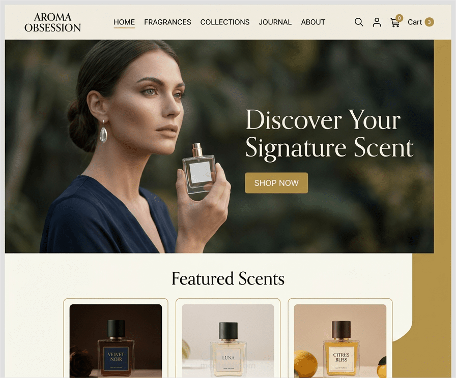 1- كتالوج منتجات أنيق وبحث متقدم عن العطور الفاخرة.
