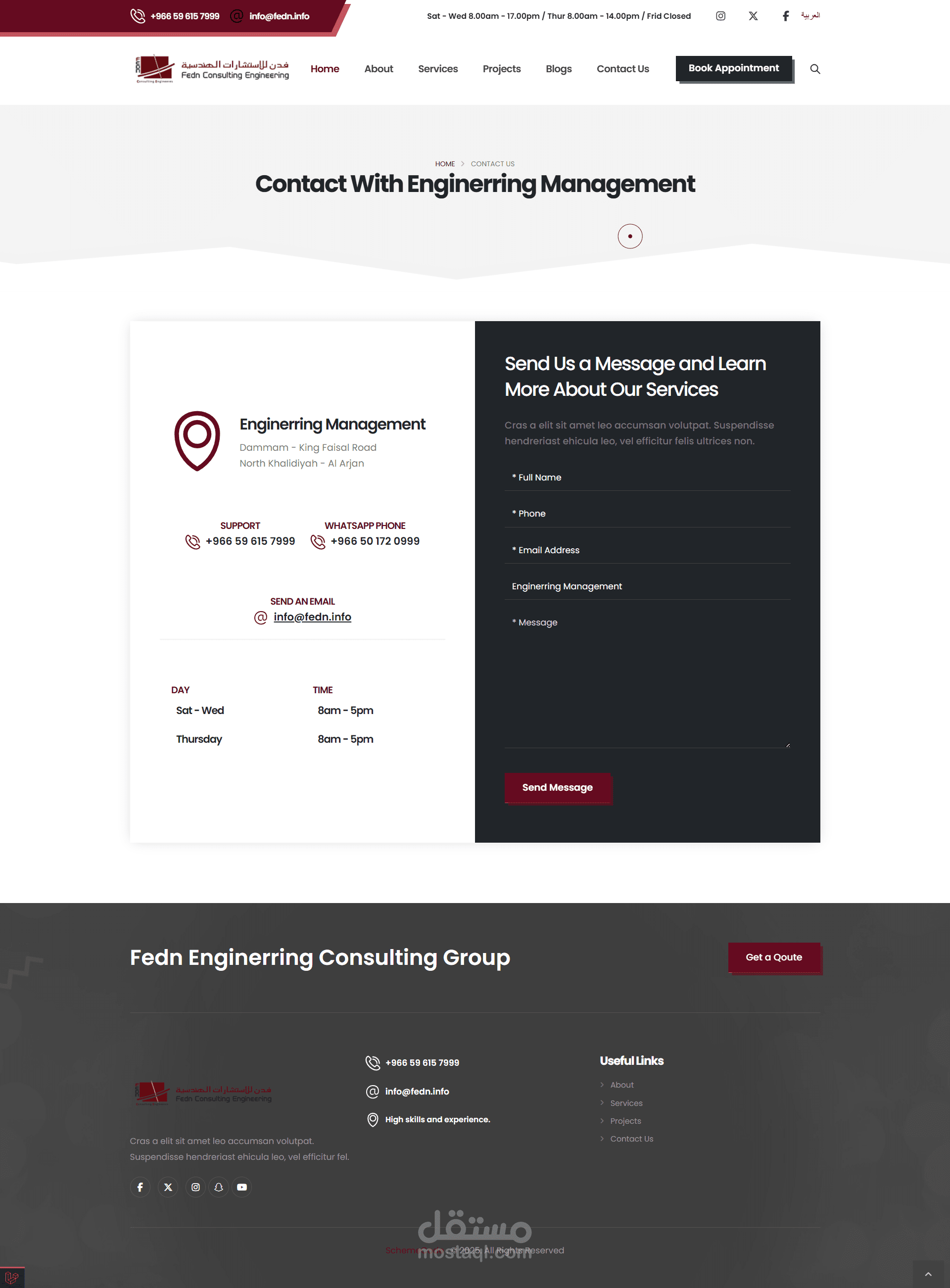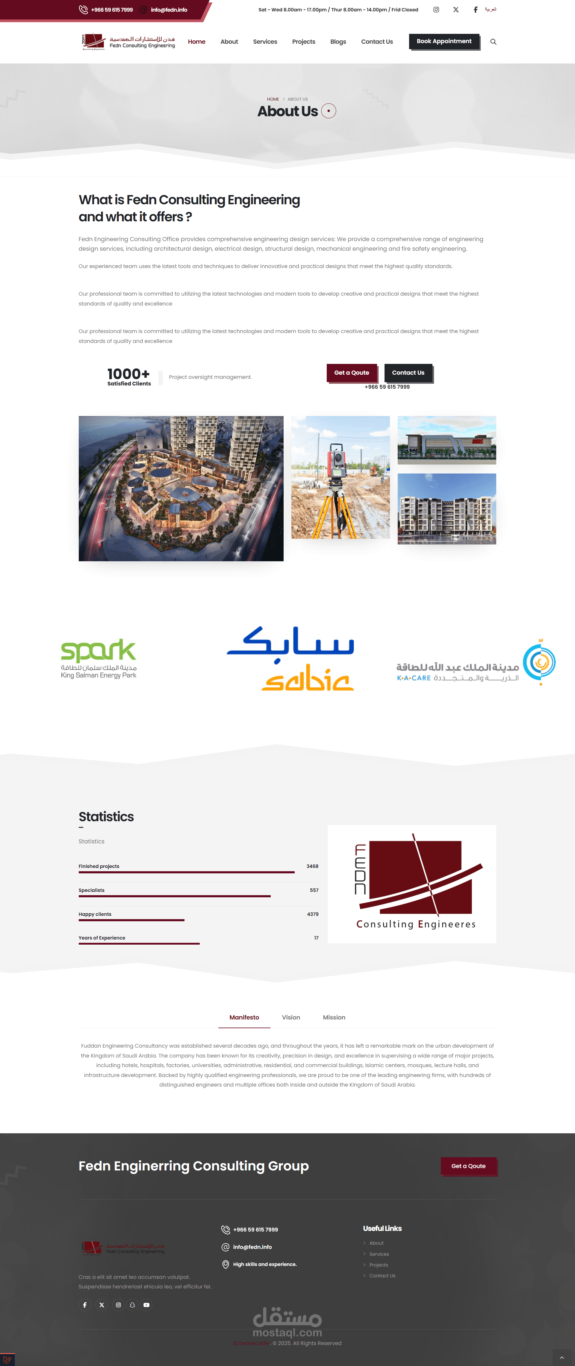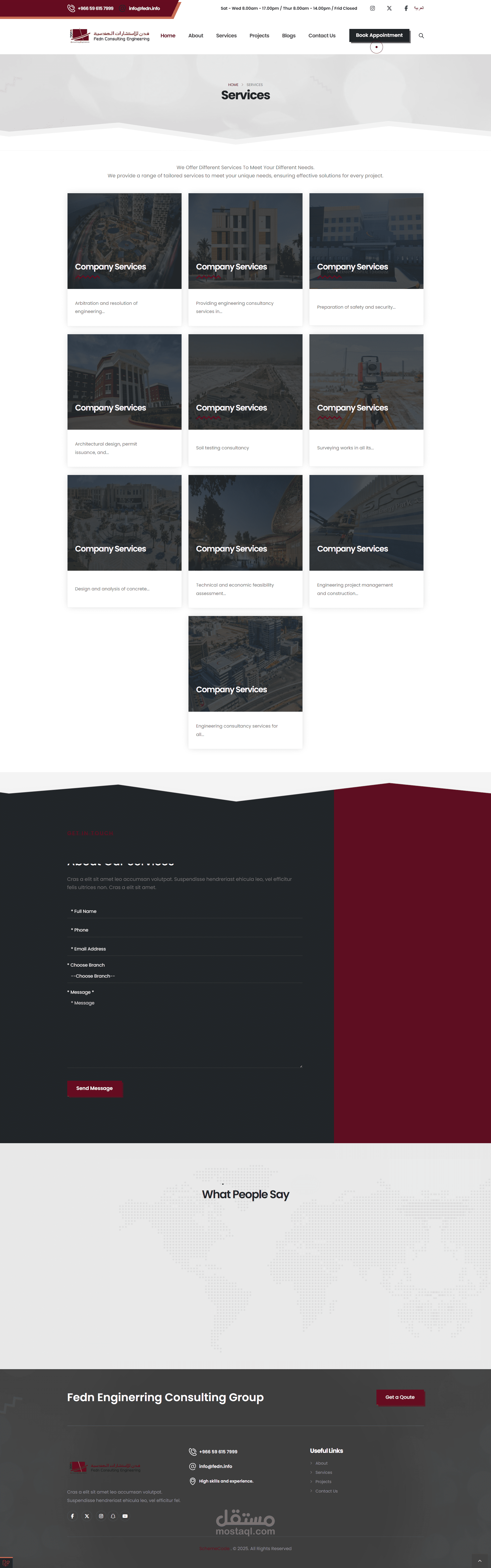 The public website presents FEDN’s engineering consultancy services in a modern, clean, and professional design that reflects credibility and engineering excellence. It includes: