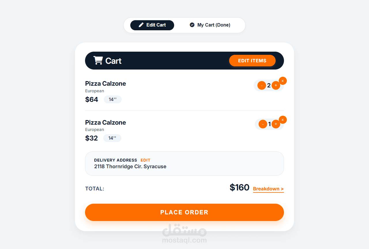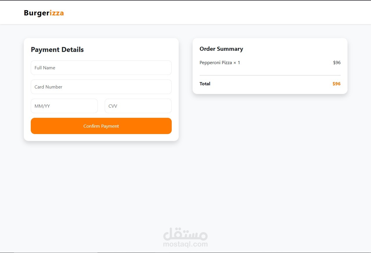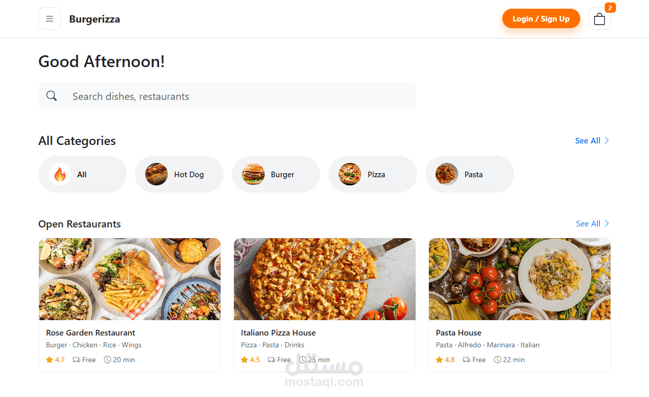تطبيق ويب لطلب الطعام ، يتيح للمستخدمين تصفح قائمة الطعام، إضافة المنتجات إلى السلة، وإتمام عملية الطلب بسهولة.