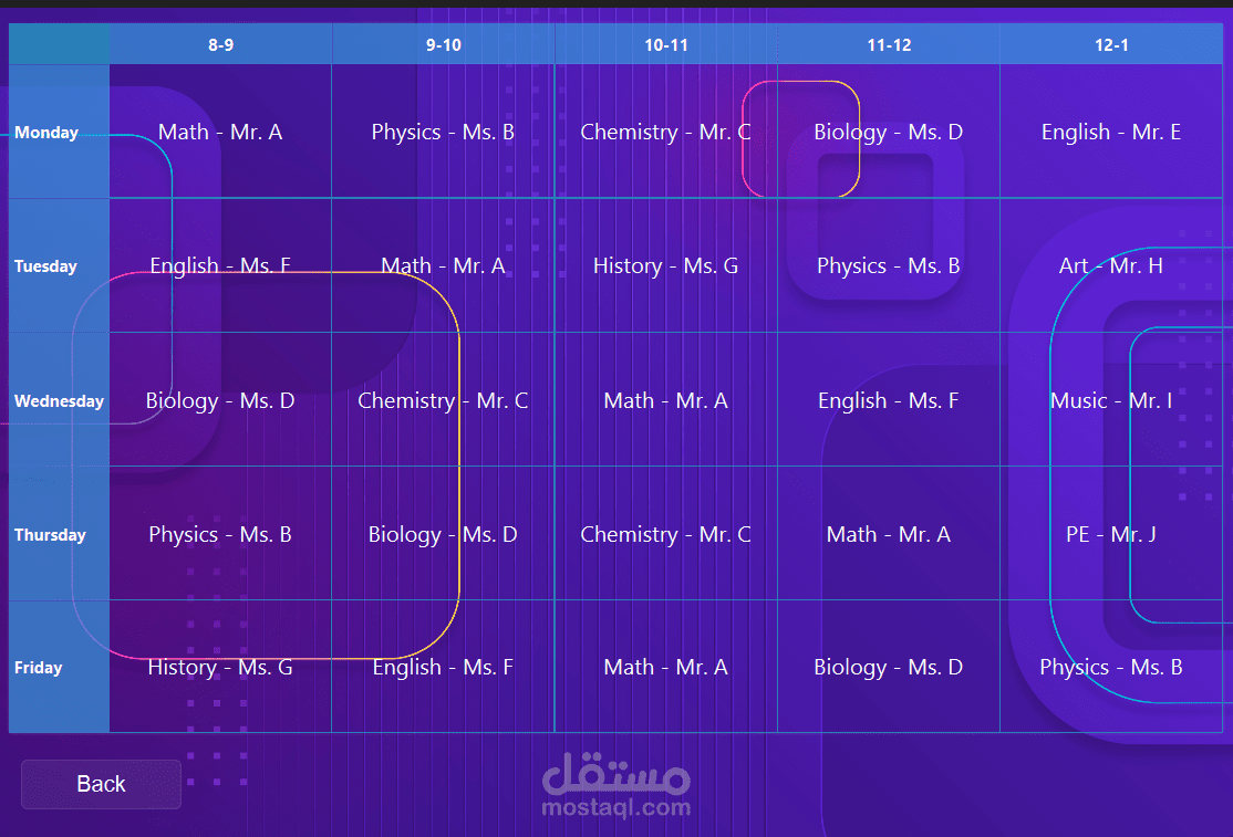 واجهة AI يستخدم ف اعطاءه جداول عشوائية و يقوم بتحسينها و تنظيمها باحسن شكل ممكن و توزيع المحاضرات بطريقة منسقه و فعاله ف الاستفاده من الوقت