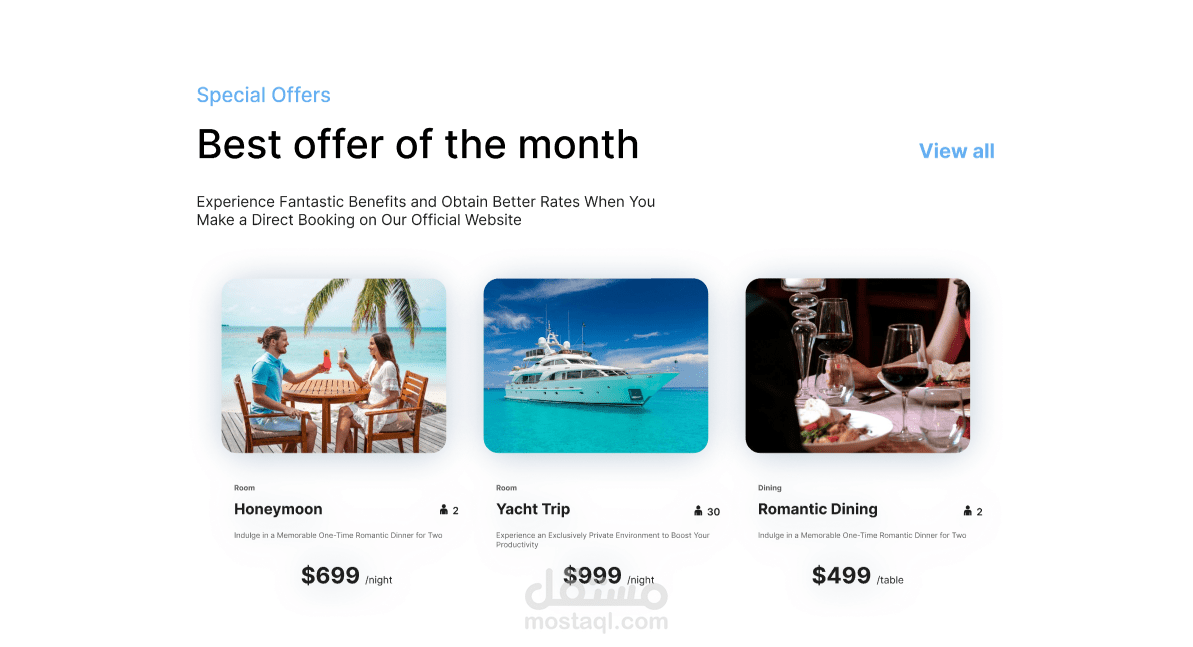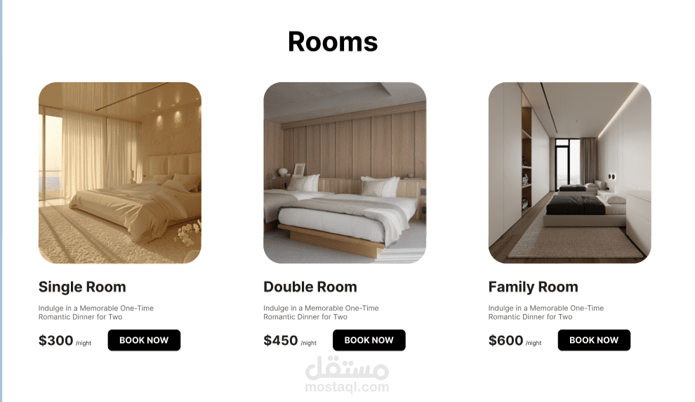 أقدم لك خدمة تصميم وتطوير نظام حجز غرف فندقية احترافي وسهل الاستخدام، يتيح لعملائك تصفح الغرف المتاحة وحجزها بكل سهولة من خلال واجهة عصرية ومتجاوبة مع جميع الأجهزة.