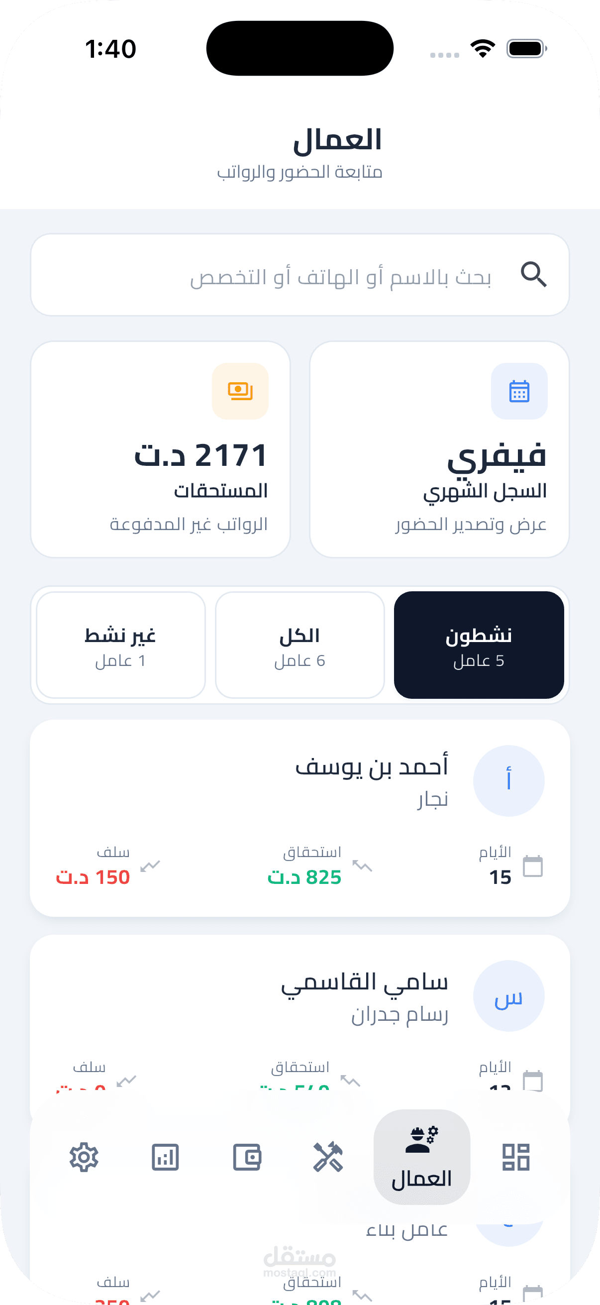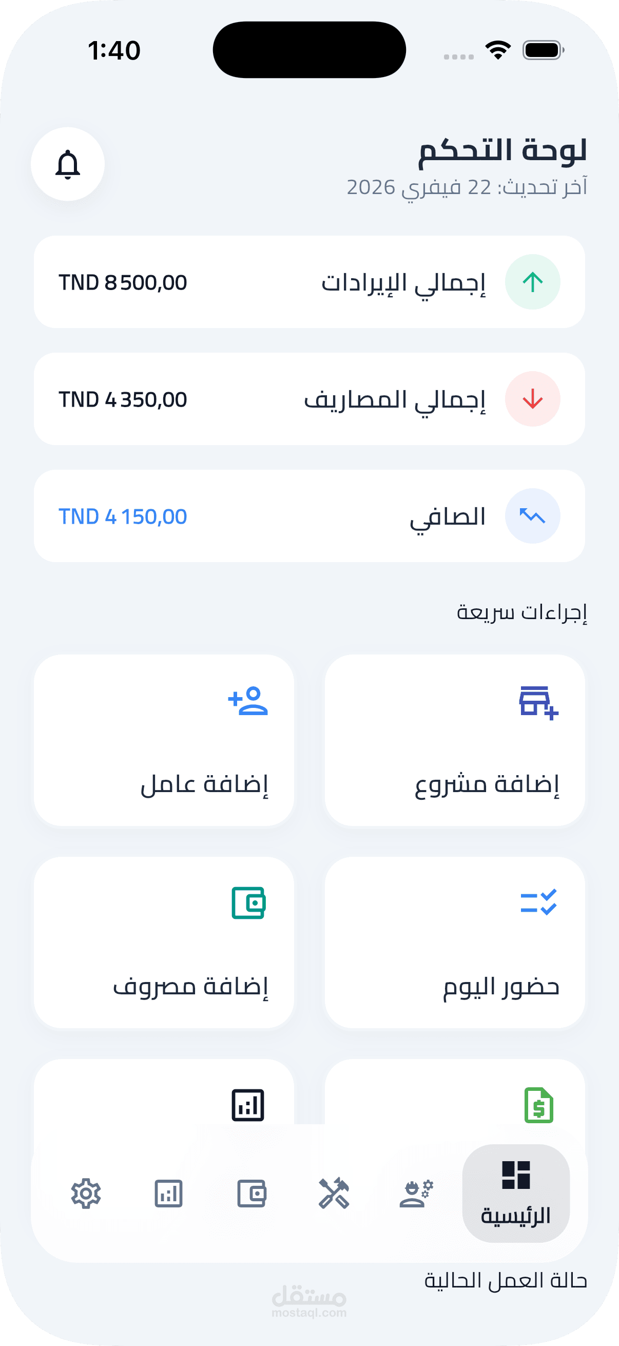صمّمت وطوّرت هذا التطبيق لحل مشكلة حقيقية يعاني منها المقاولون: إدارة العمال والمشاريع يدوياً بالورق والجداول، مما يُفضي إلى أخطاء في الرواتب وضياع بيانات العملاء وغياب أي رؤية مالية واضحة.
