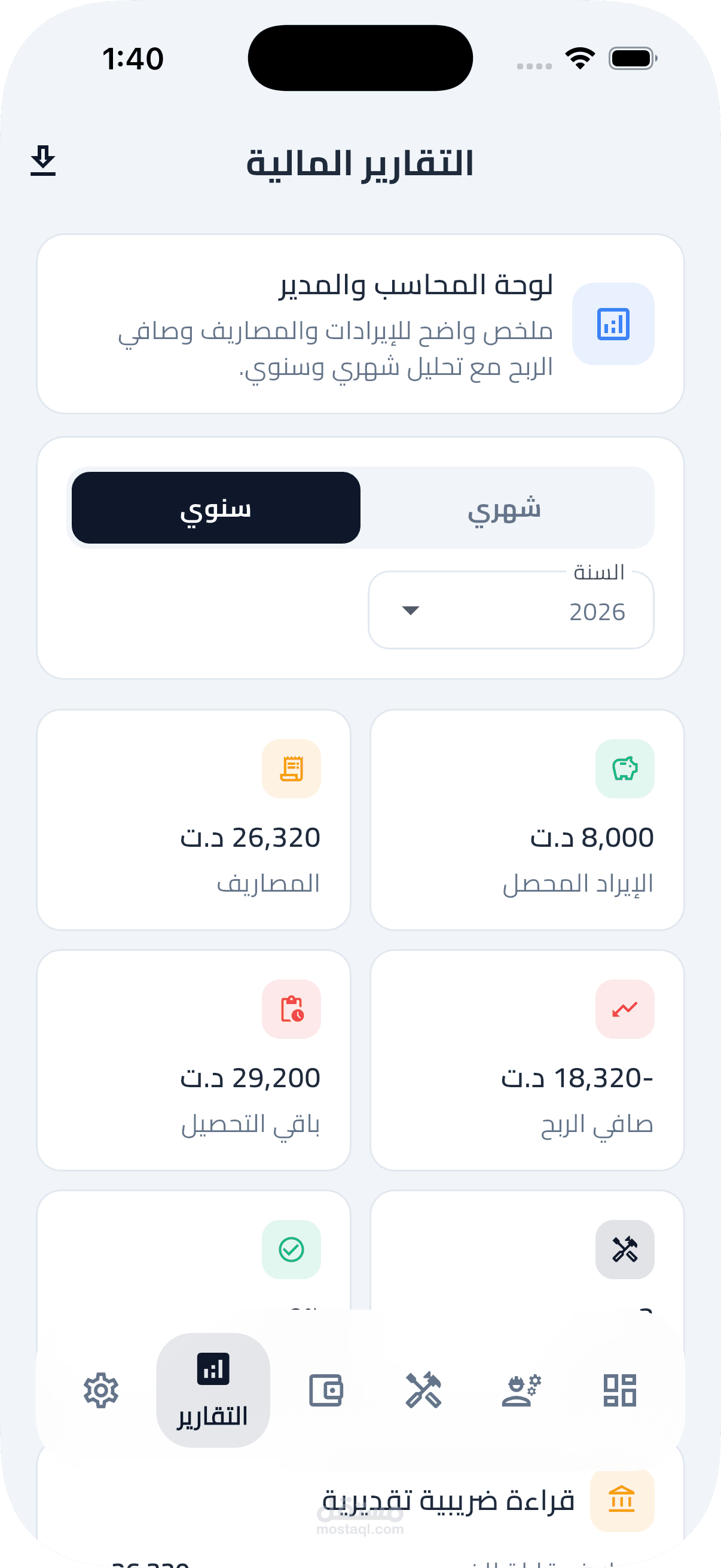التقنيات: Flutter · Riverpod · Clean Architecture · Supabase · واجهة عربية كاملة