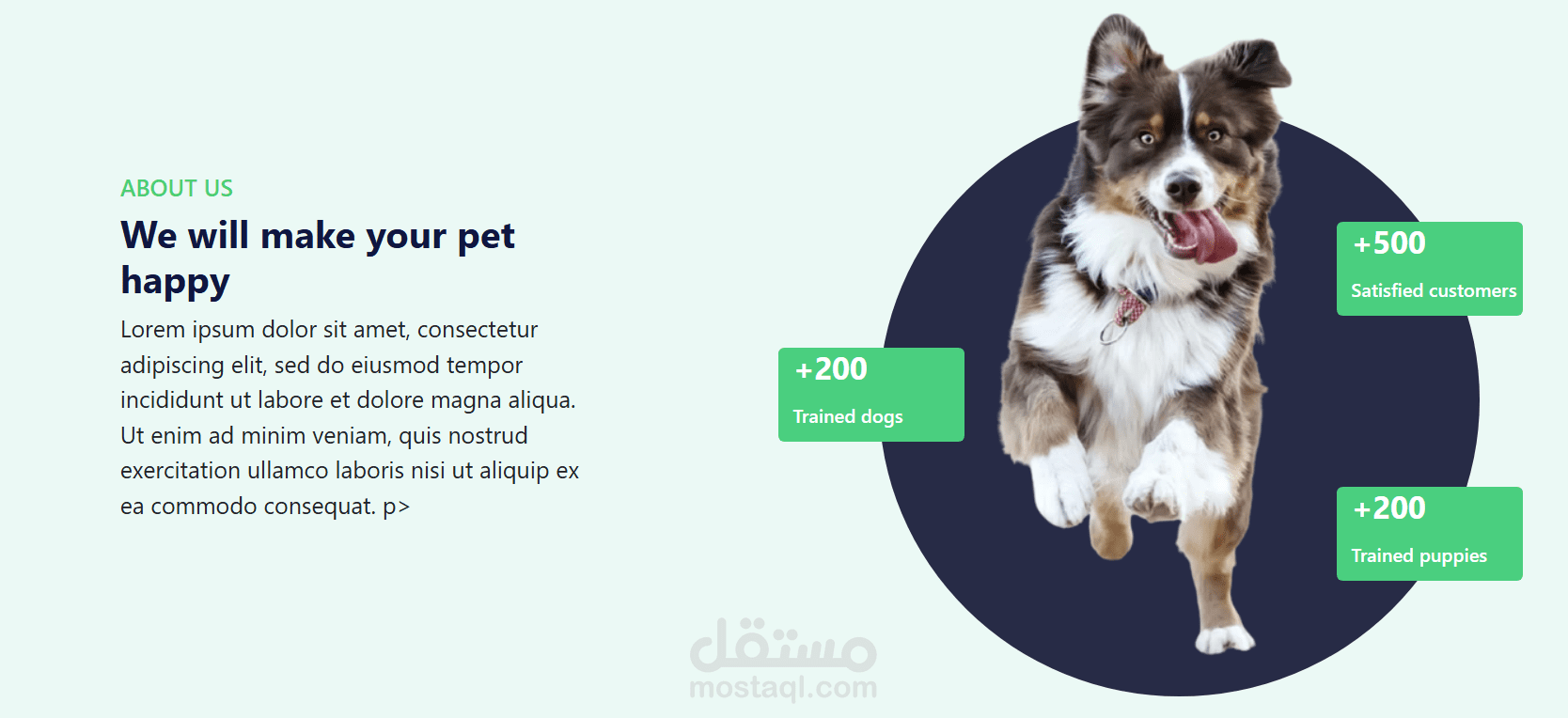 الصور: تم استخدام صور عالية الجودة لحيوانات أليفة (كلاب وقطط) في وضعيات "سعيدة"، وده بيبني ثقة فورية مع المستخدم.