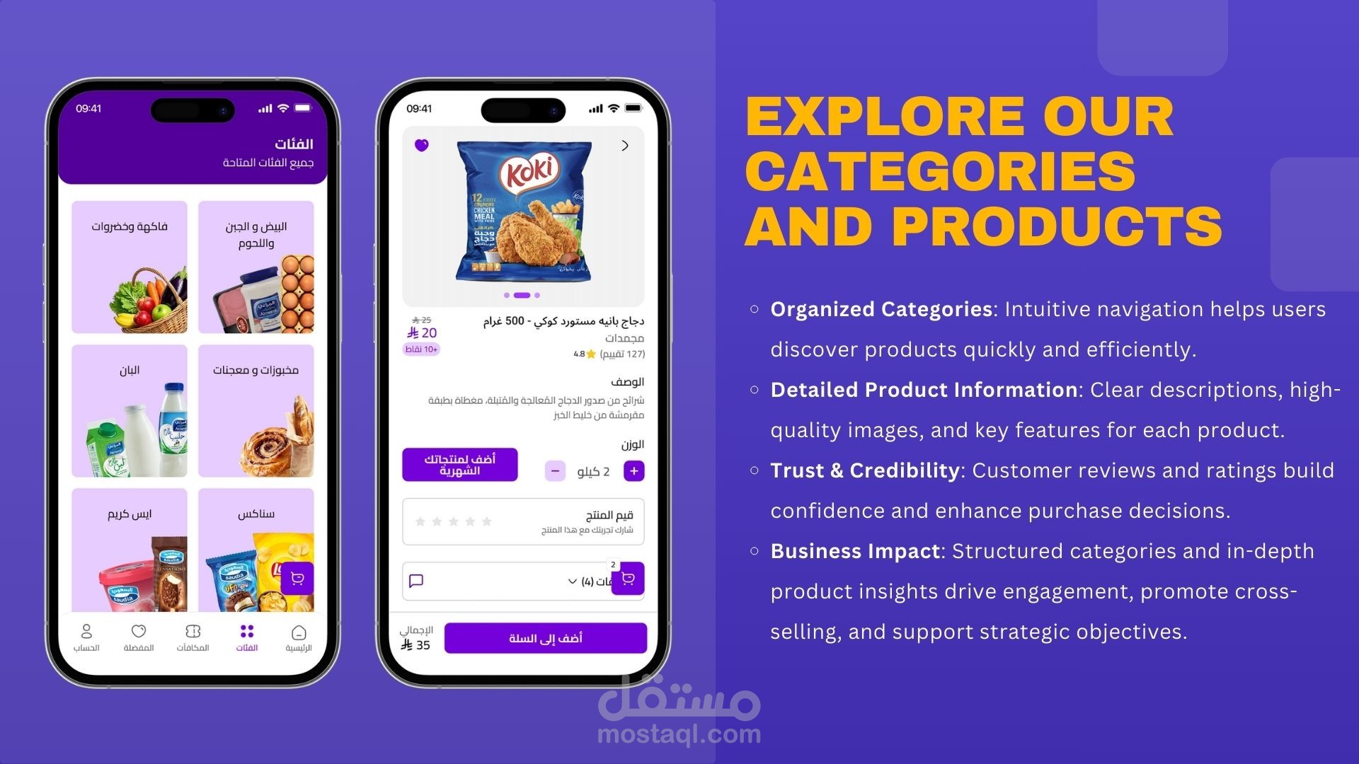 ركز العمل على تبسيط تجربة التسوق، وتحسين طريقة عرض المنتجات، وتصميم واجهات تساعد المستخدم على اتخاذ قرار الشراء بسهولة. كما كان العمل الجماعي عنصرًا أساسيًا في تطوير الأفكار ومناقشة الحلول المناسبة للوصول إلى أفضل تجربة ممكنة.
