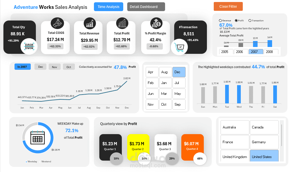 ? الولايات المتحدة وأستراليا بيشاركوا بنسبة ٦٠.١٪ من إجمالي الأرباح، ودا بيخليهم أكتر الأسواق ربحية.