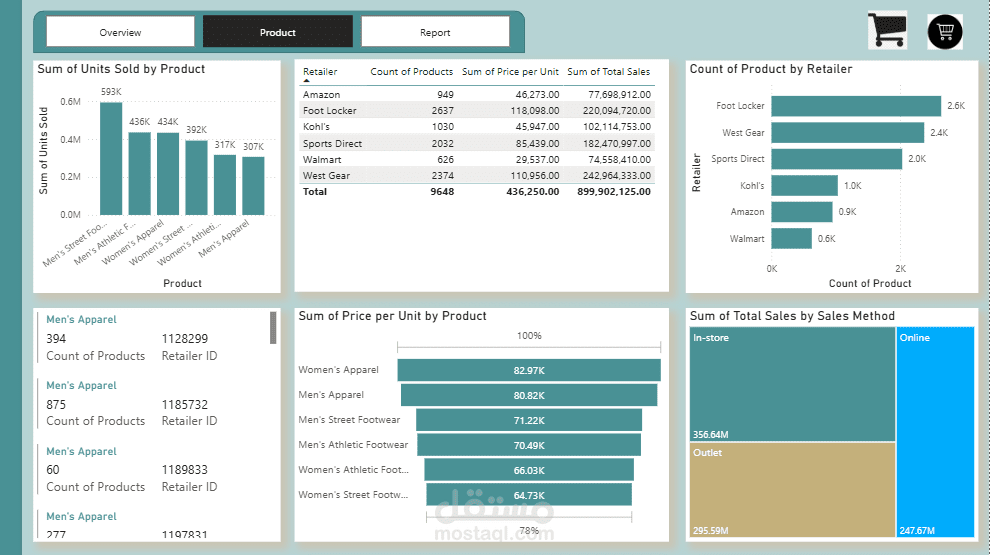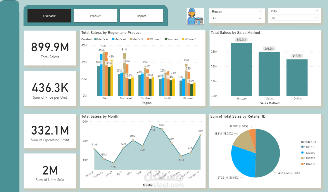 قمت بتنفيذ تحليل شامل لبيانات مبيعات شركة Adidas بهدف فهم أنماط الأداء البيعي، تحديد أكثر المنتجات والمناطق ربحية، واكتشاف العوامل المؤثرة على الإيرادات وصافي الربح.