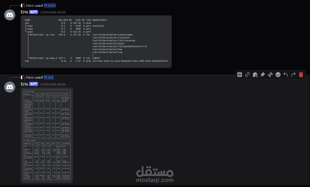 • تطوير بوت على Discord لتنفيذ أوامر الخادم بأمان عبر بروتوكول SSH، مما يتيح الإدارة عن بُعد دون الحاجة إلى وصول مباشر للطرفية (Terminal).