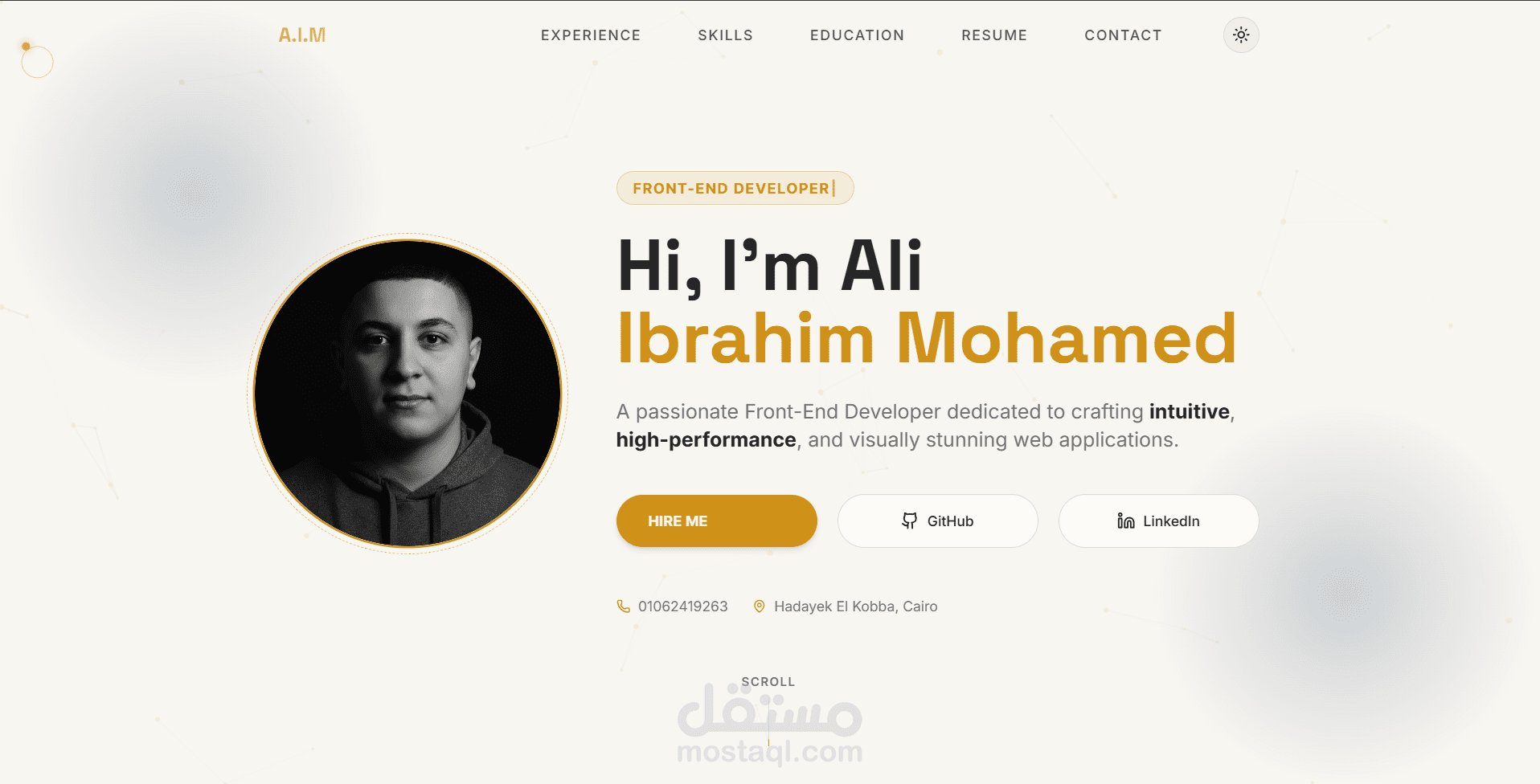 الموقع مصمم ليعكس الهوية الشخصية للمطور، ويُظهر الأعمال السابقة بطريقة منظمة مع تجربة مستخدم سلسة وسرعة أداء عالية.